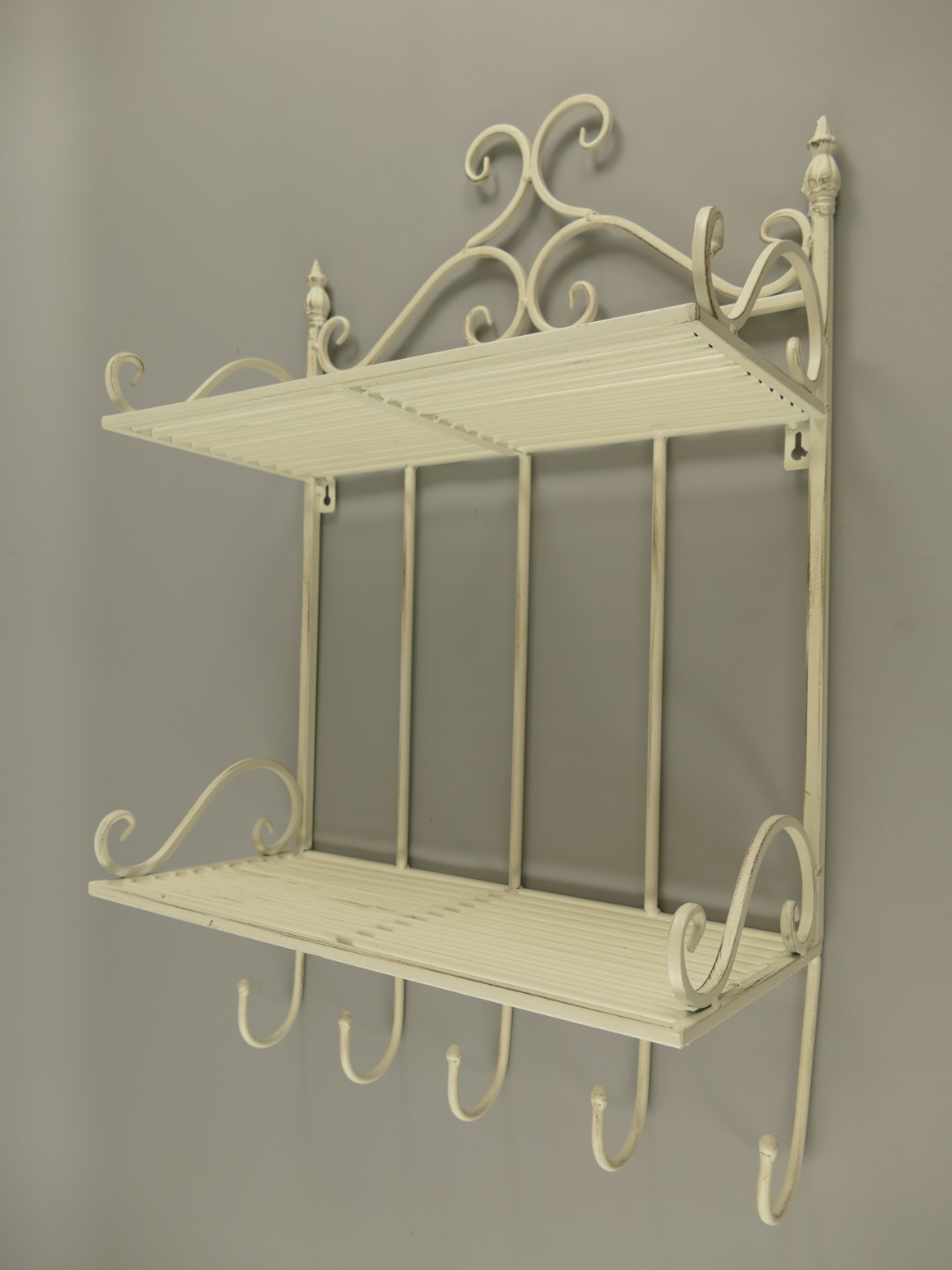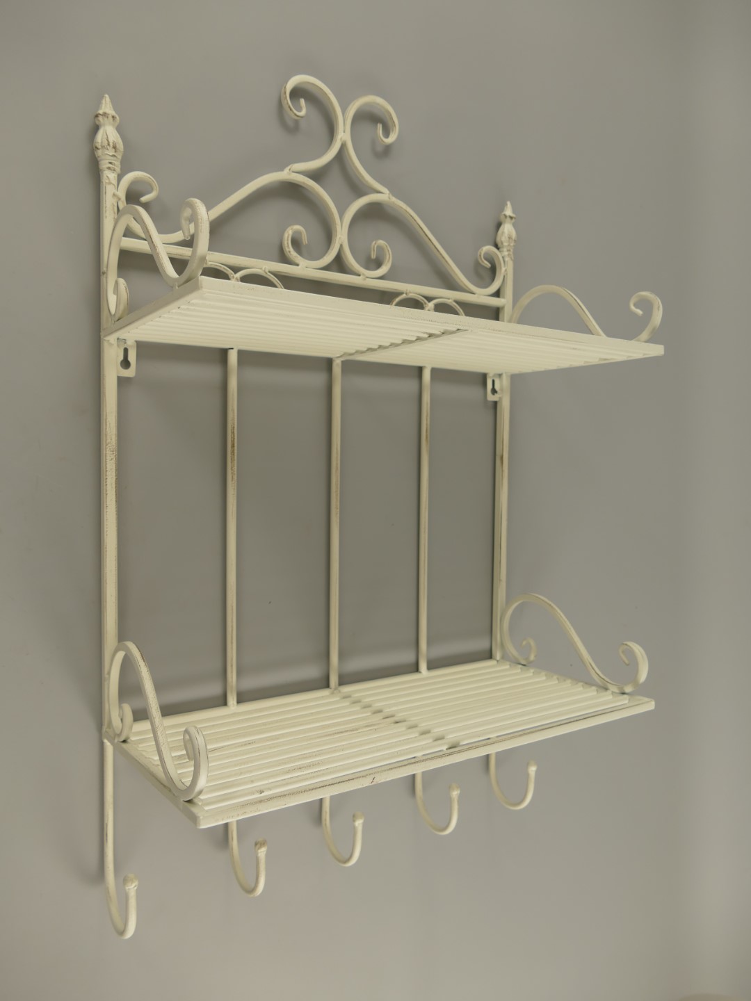 Wandhaken 2-ablagen Eisen rustikal weiss L.42x68cm