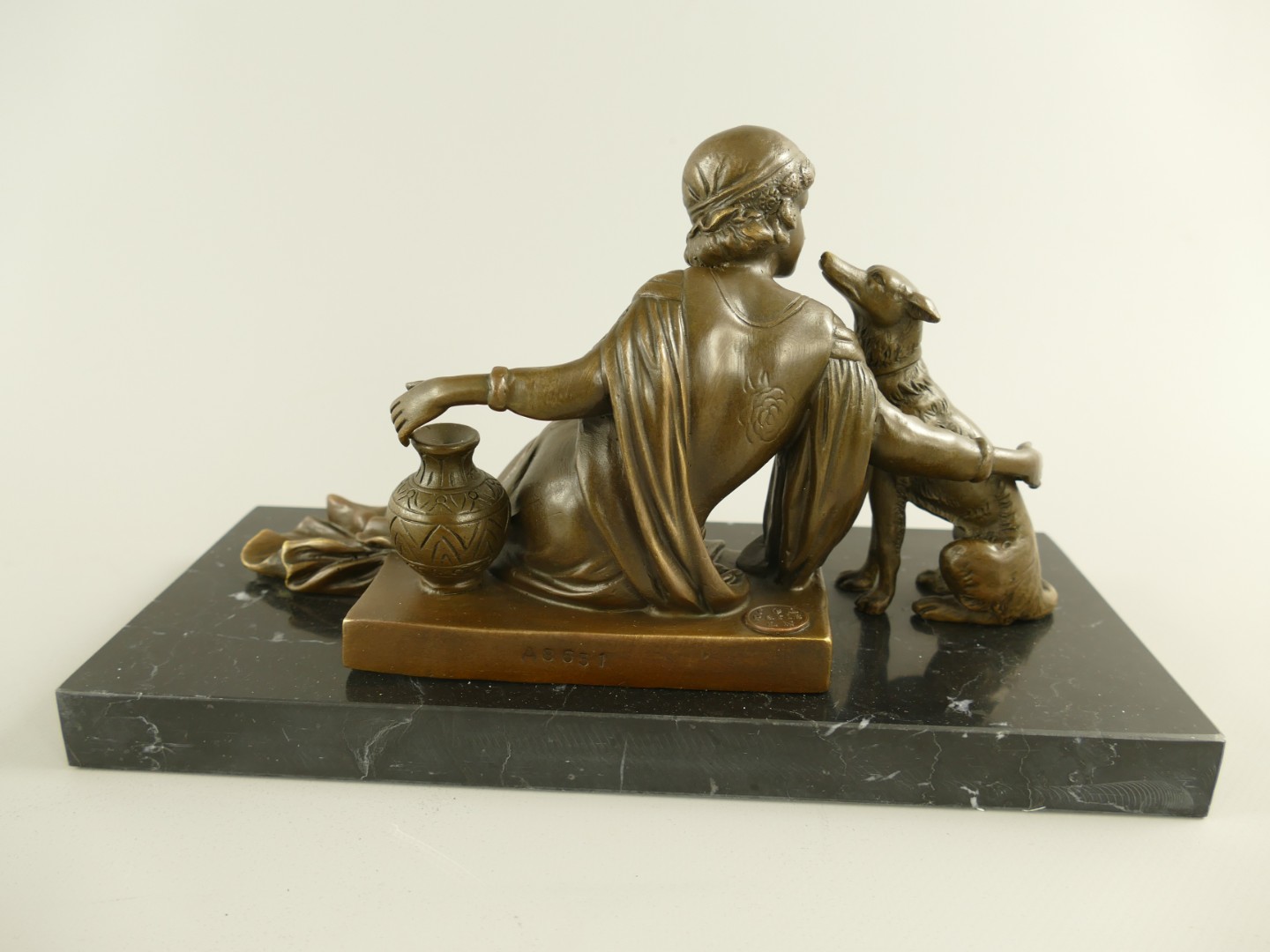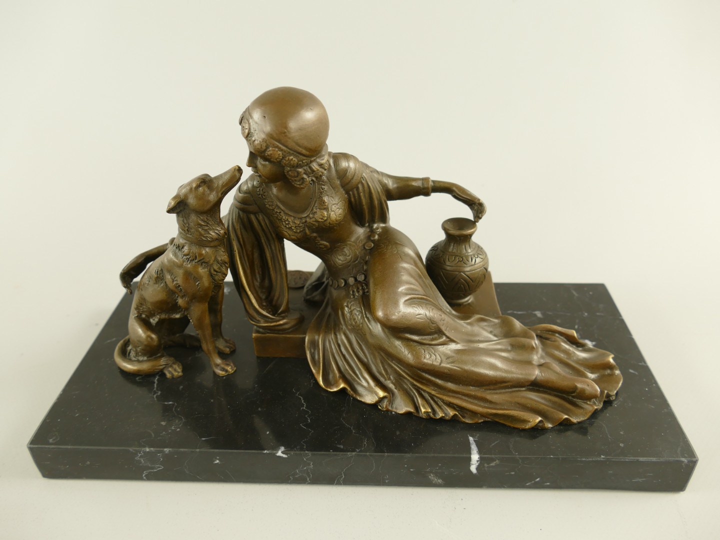 Figur Bronze Frau mit Hund L.27x15x12cm