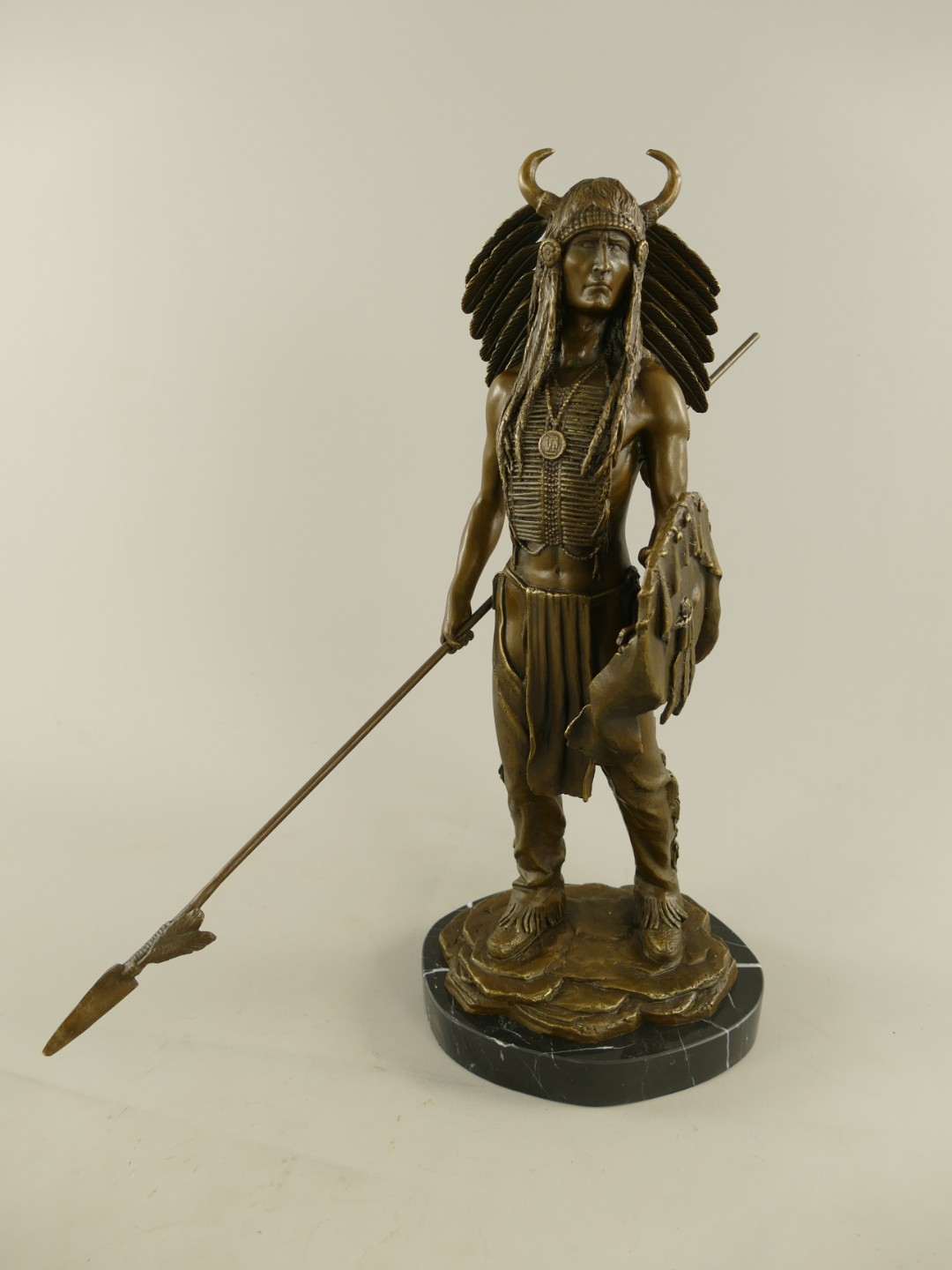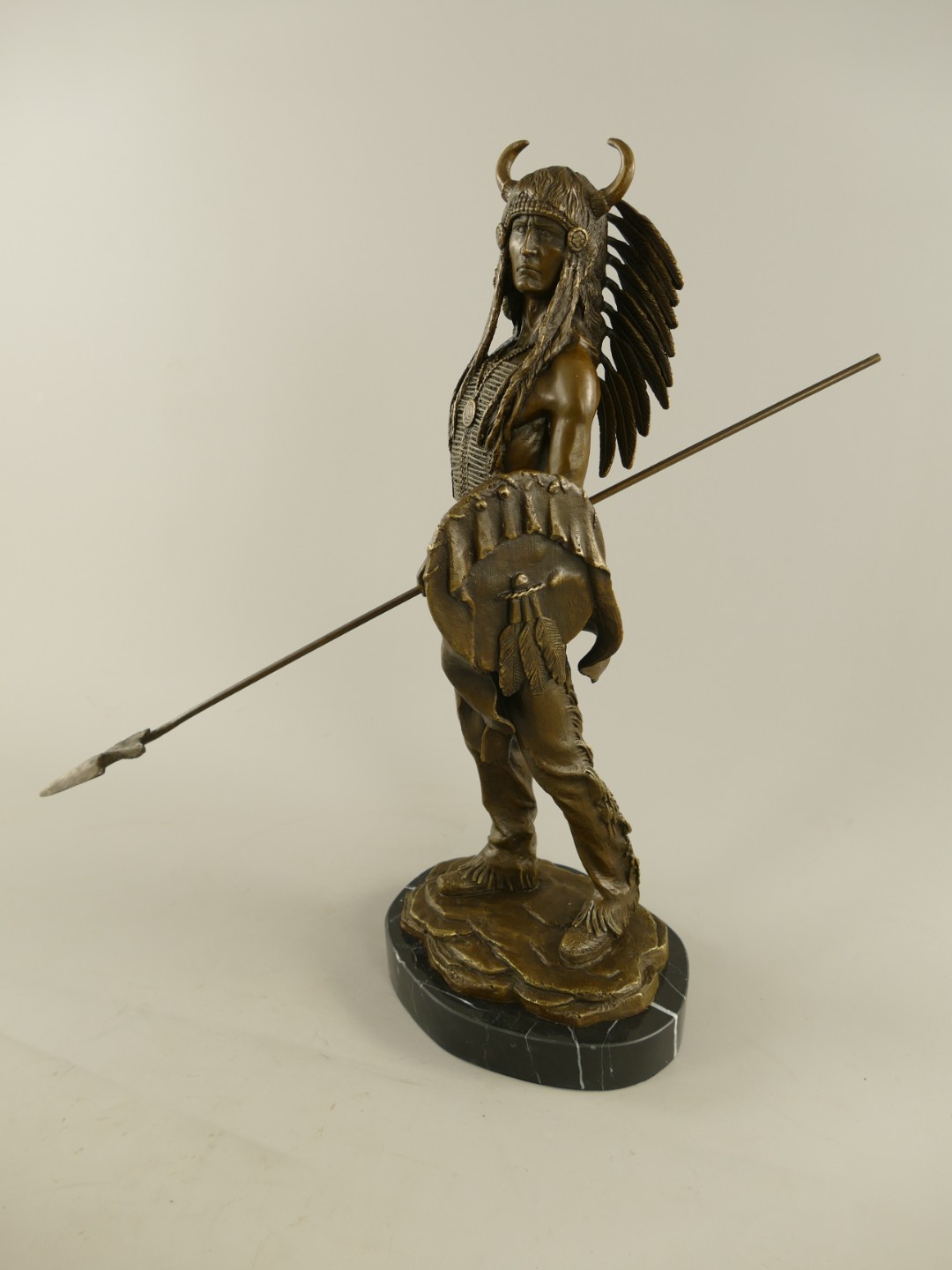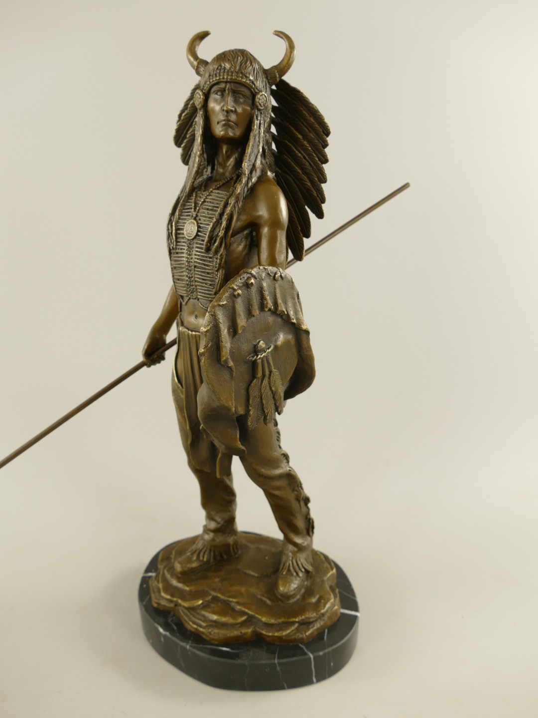Figur Bronze Indianer mit Schild und Speer H.50cm