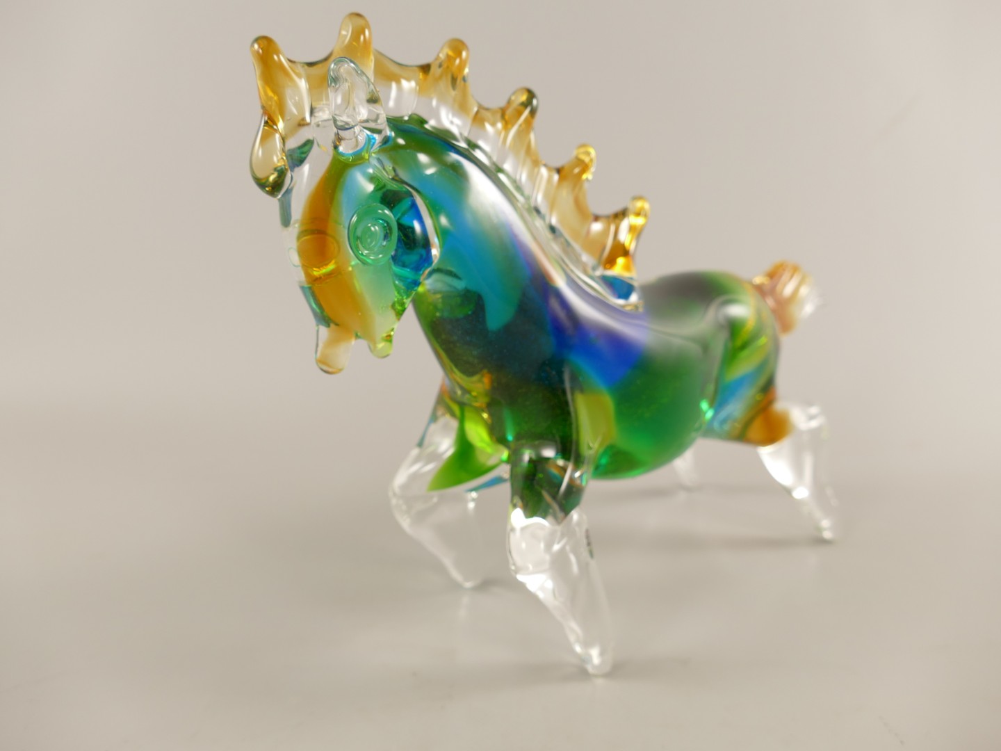 Glas Pferd Blau/Grun farbe L.32cm