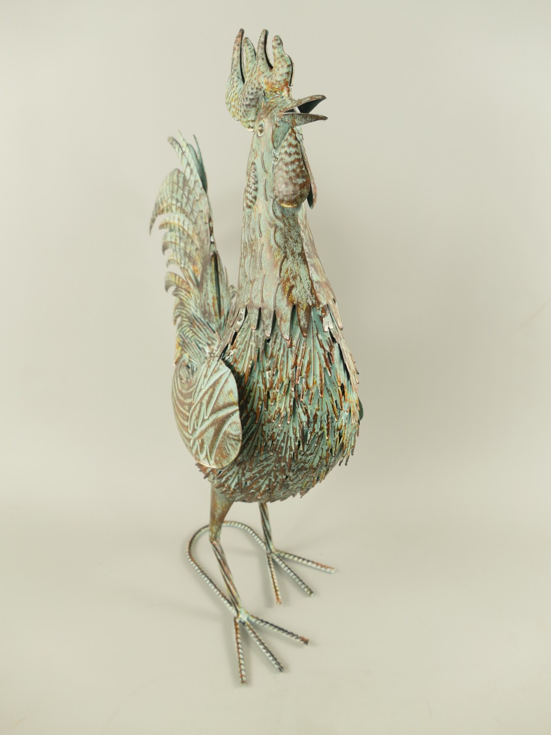 Hahn Eisen rustikal Grün farbig H.55x42x18cm