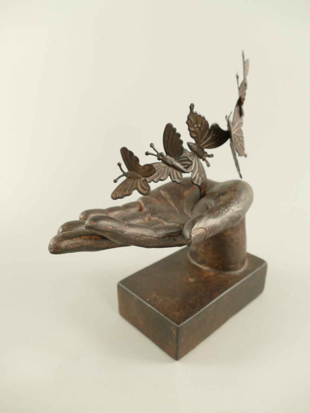 Hand mit Schmetterlingen Polystein farbe H.24cm