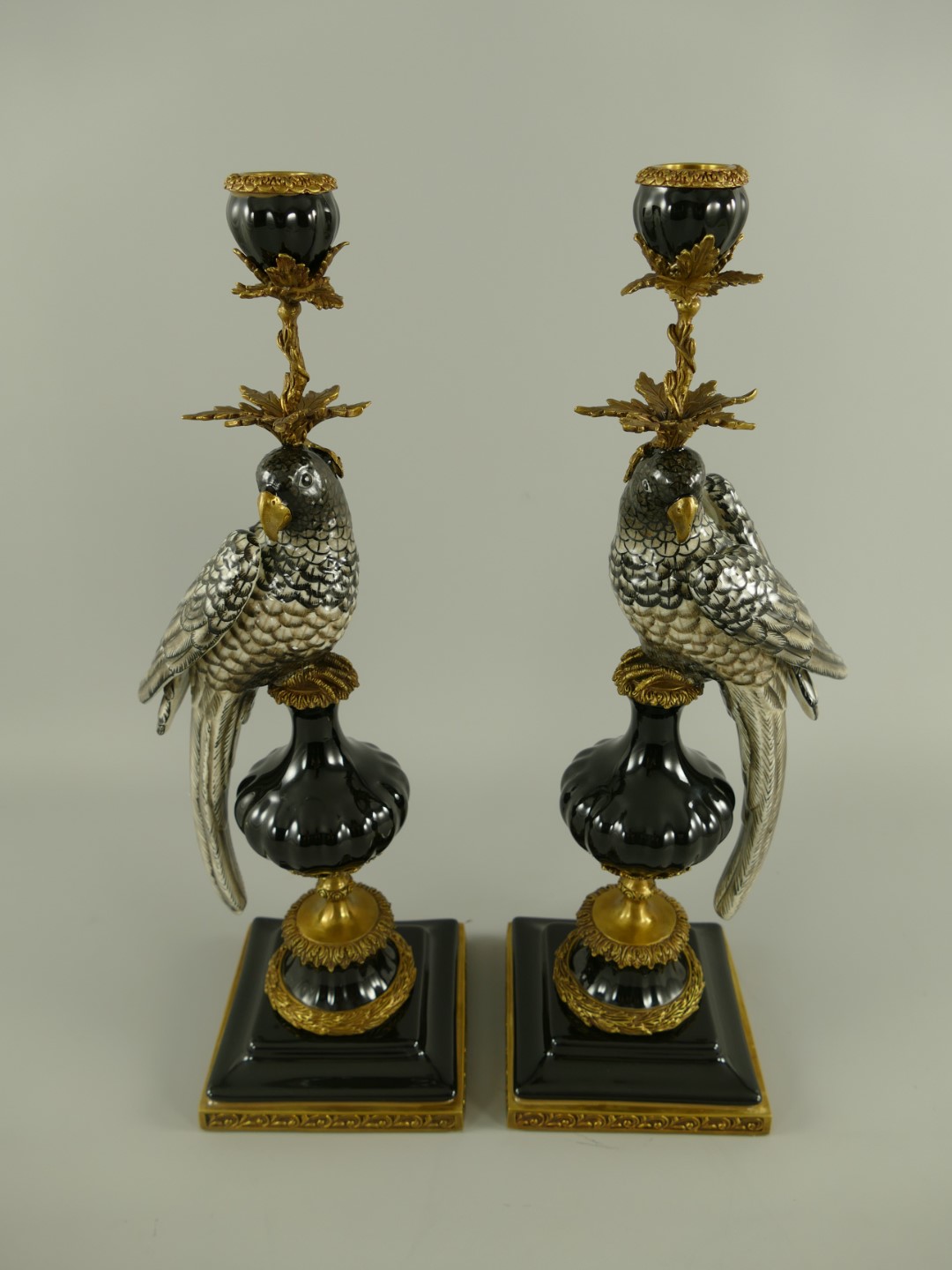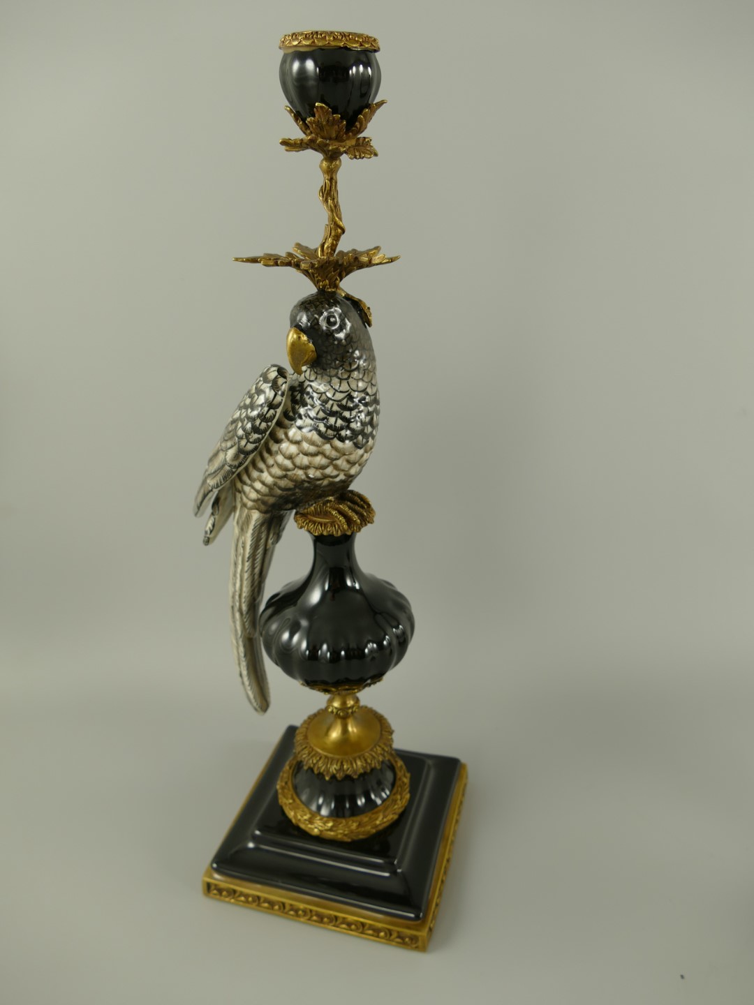 *NT Porzel./Bronz Papagei Links/Rechts H.48cm SET!