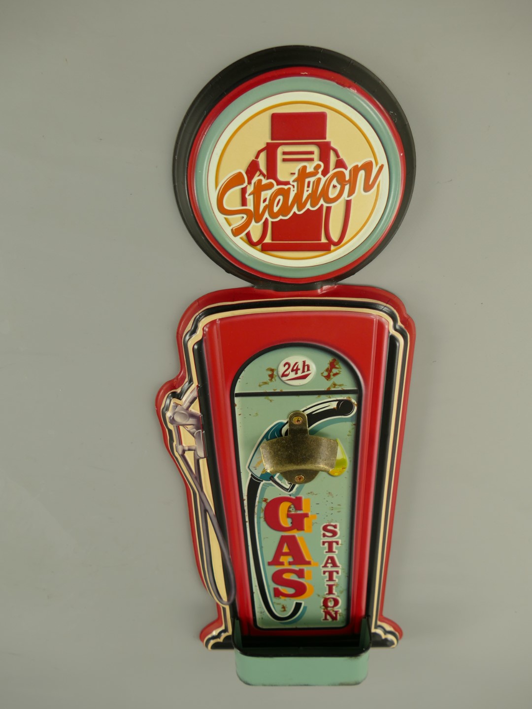 *ANG. Wandschild Tankstelle mit Offner H.63cm