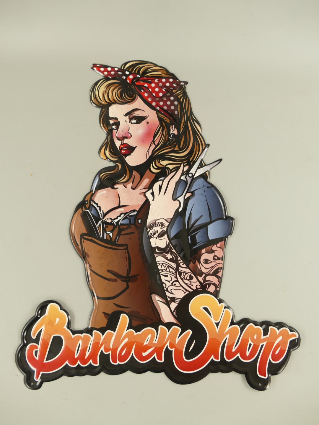 Artikelinformationen "*ANG./MÄRZ Wandschild Eisen Frau Babershop H.57cm"