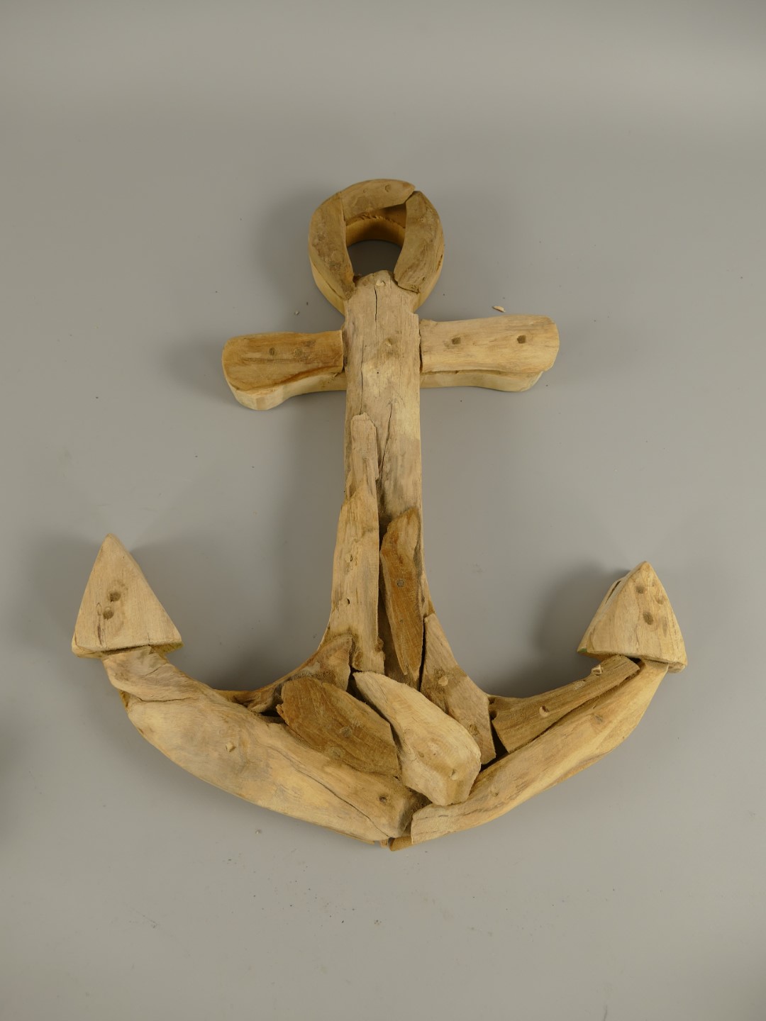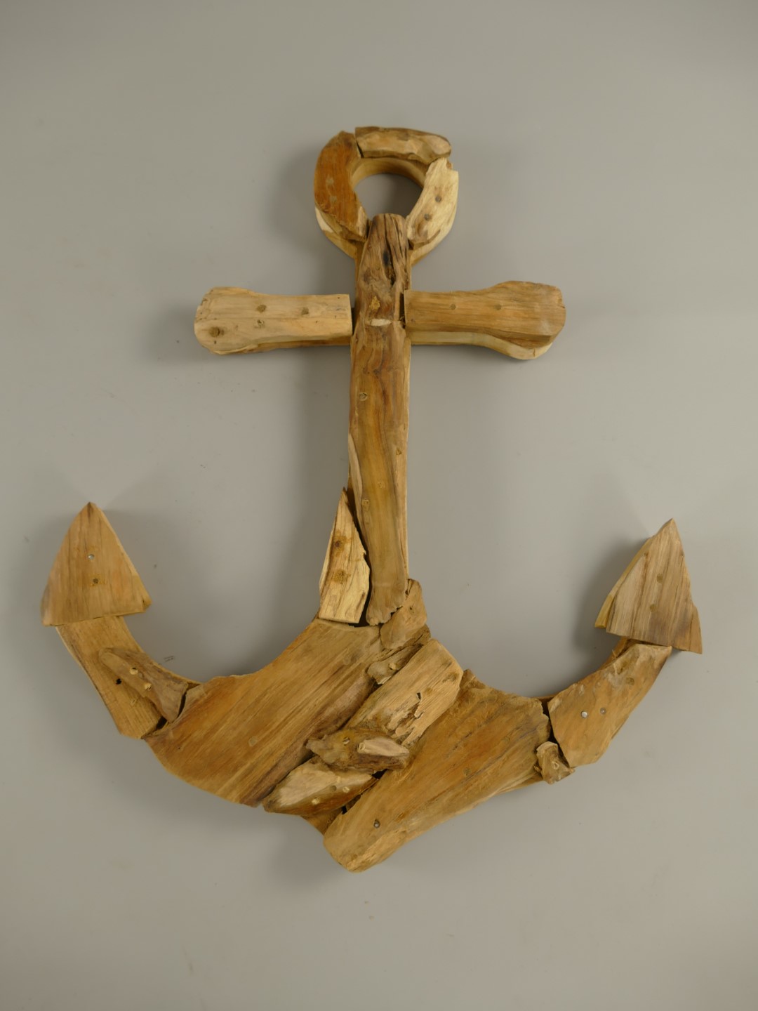 *NT Deko wand Anker Set/3 Teak Holz H.40-80cm