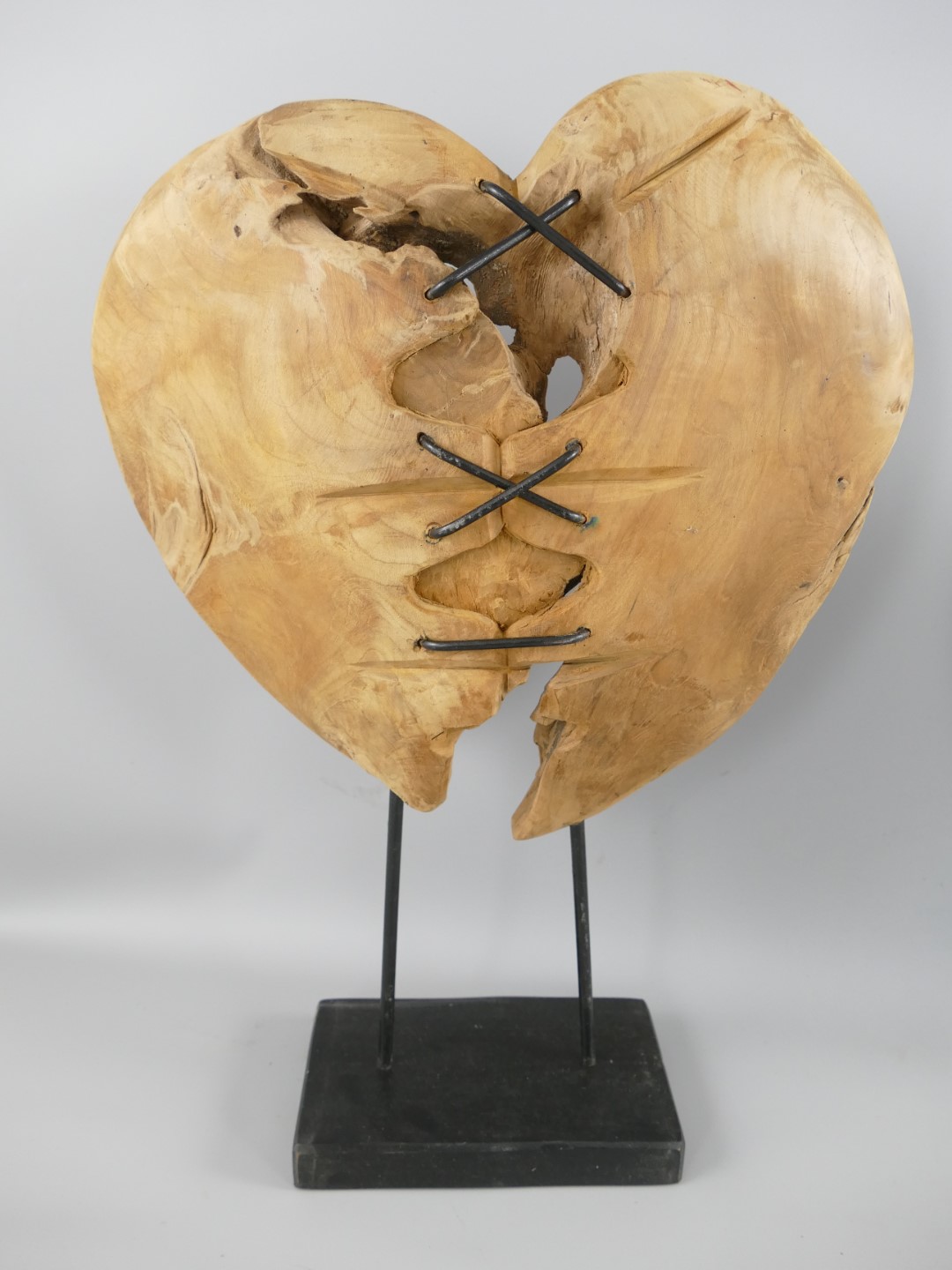 *A? *NT Deko Herz Teak Holz/Eisen 3/Set H.36-52cm