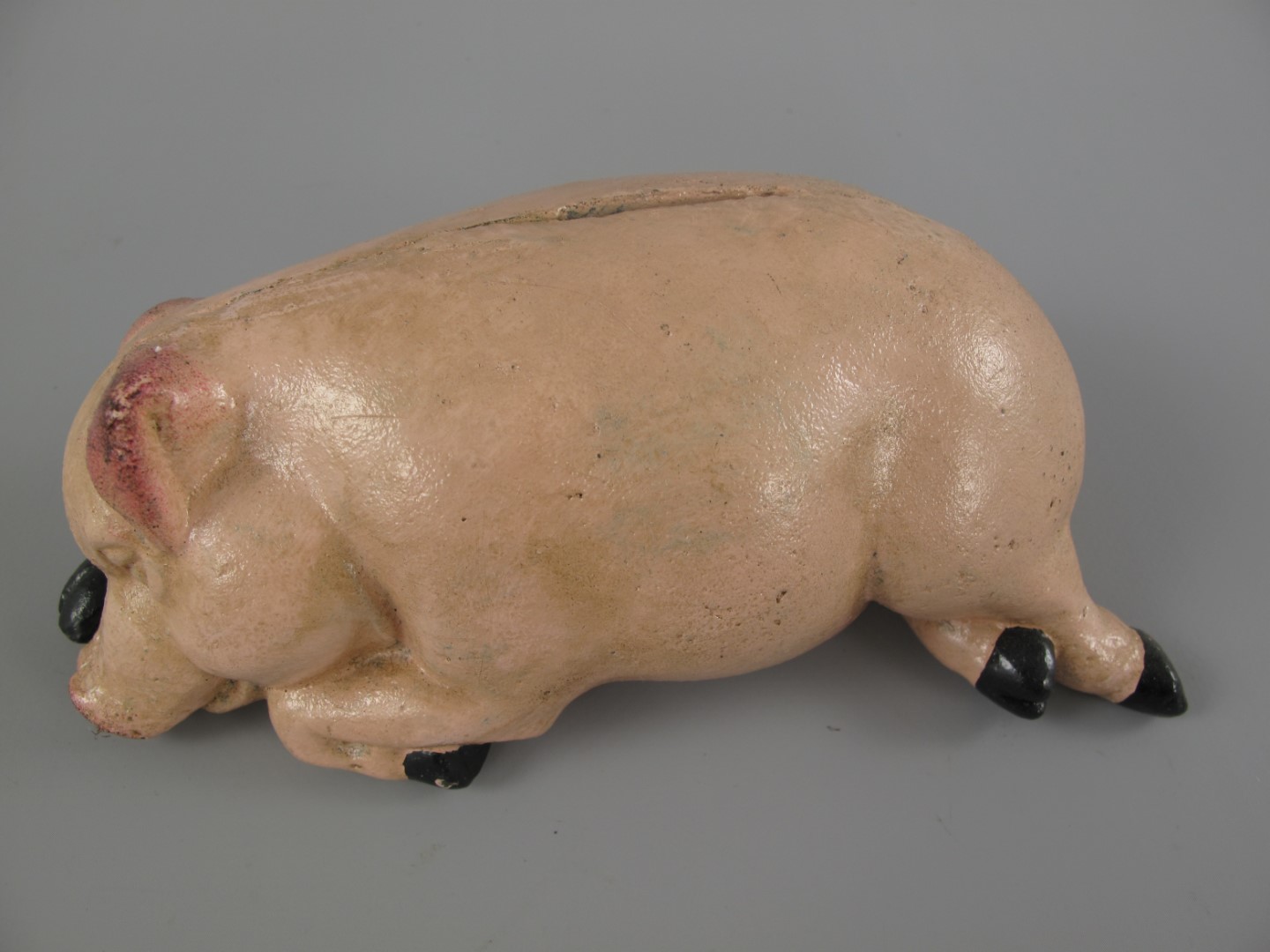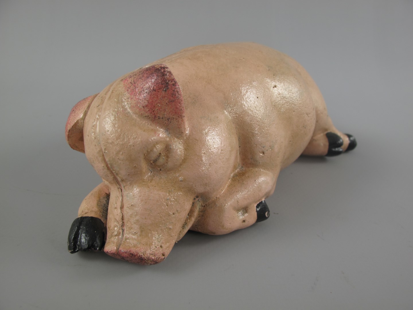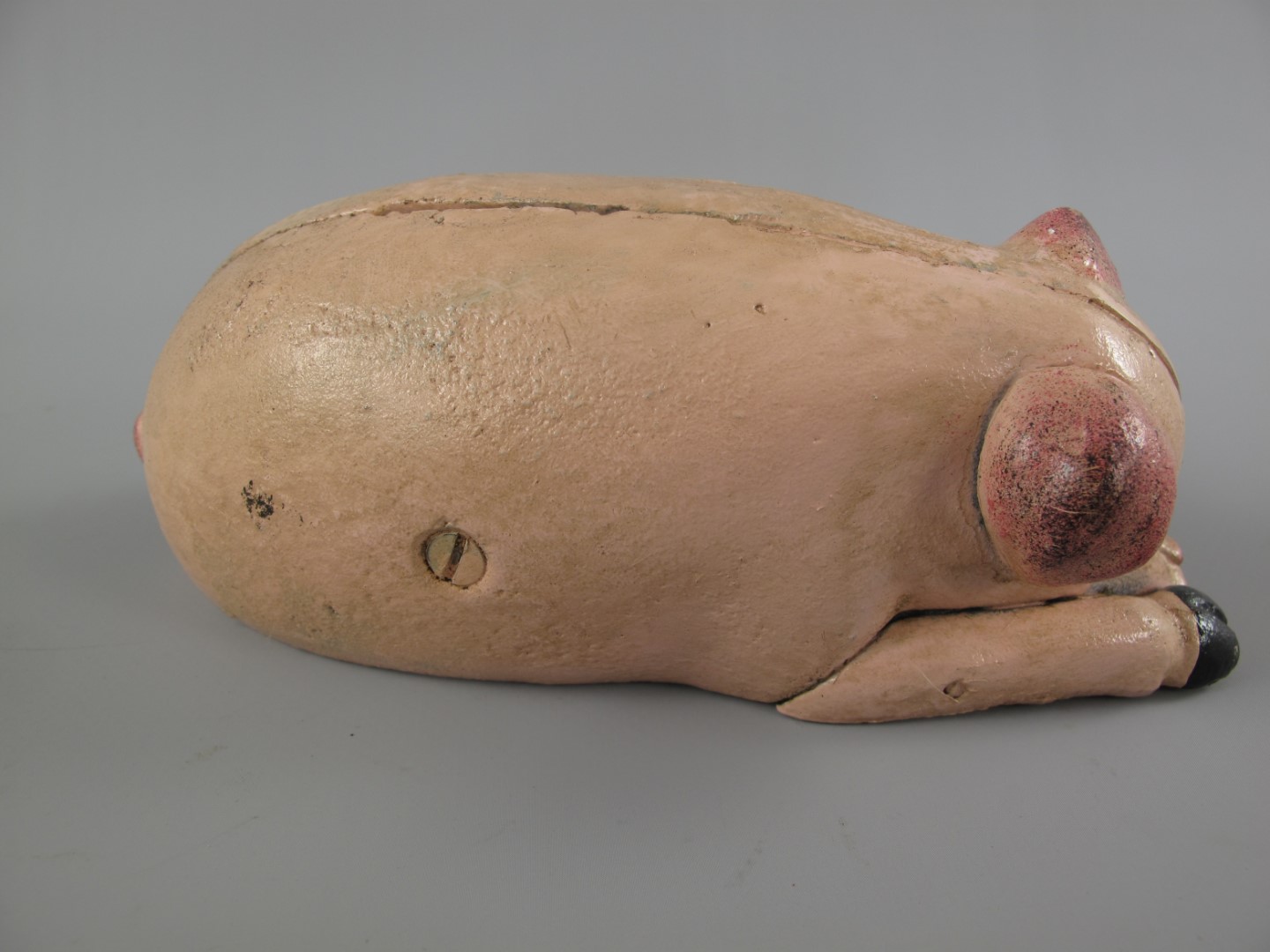 Sparschwein Schläfend Eisen farbig L.18x10cm