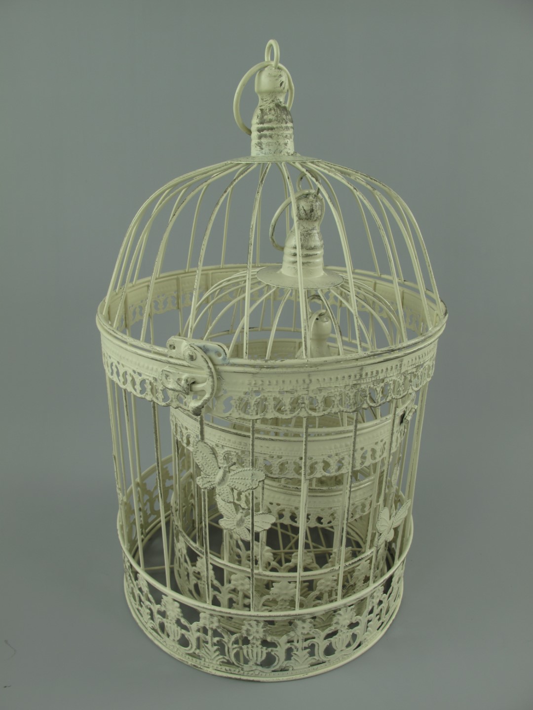 Käfig(Rund) Eisen rust. weiss Set/3 H.45/34/25cm