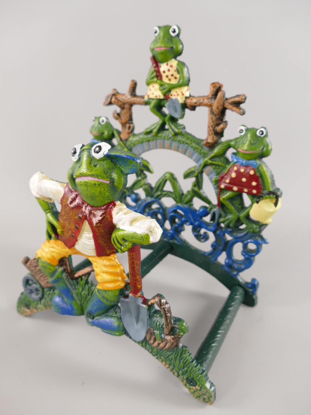 Schlauchhalter FROSCH rustikal farbig H.30x26cm