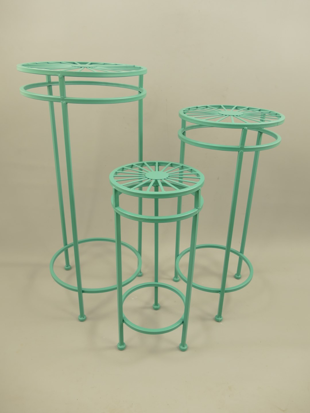 Tisch Eisen Rund rustikal grün Set/3 H.46-66cm