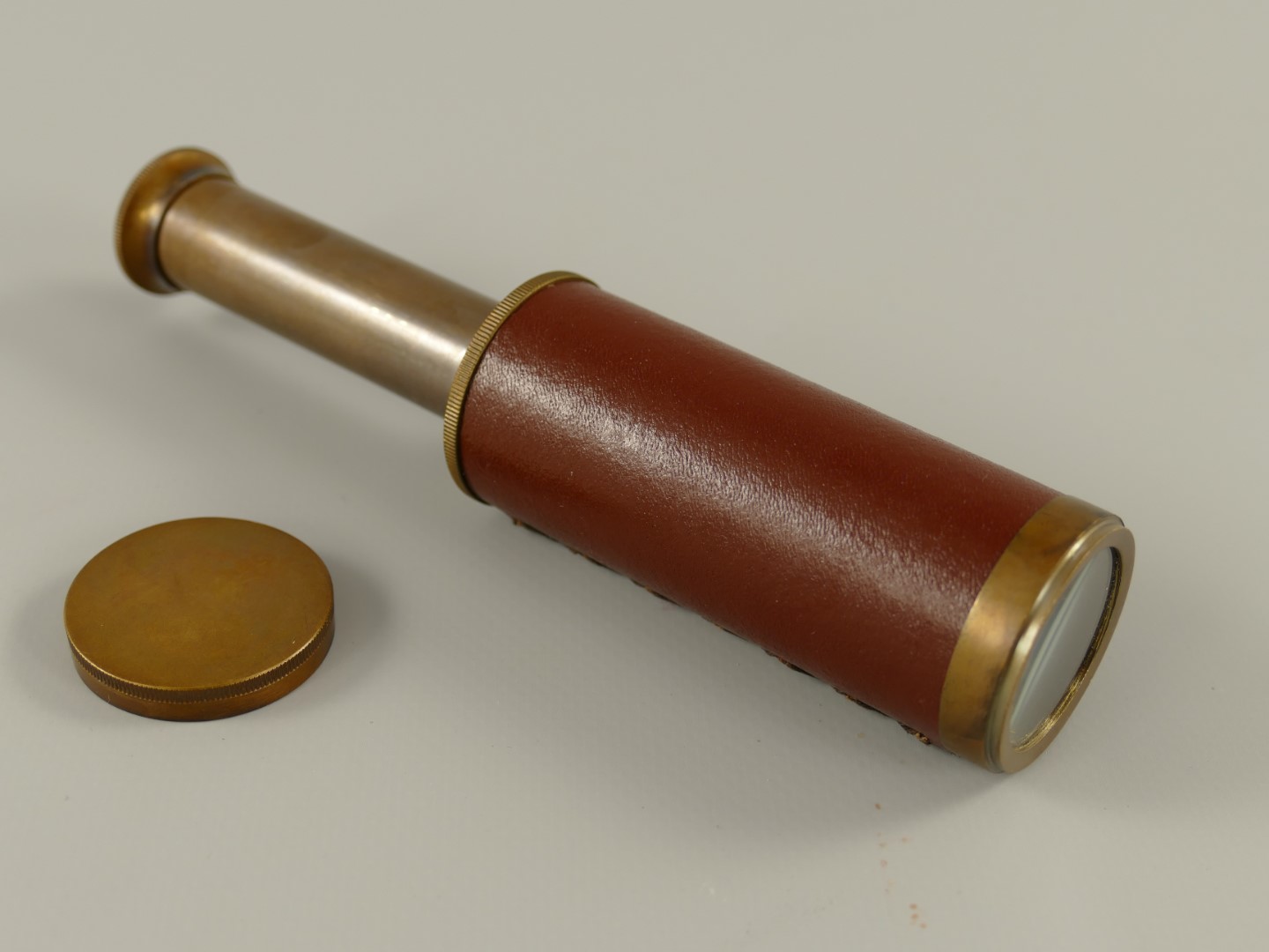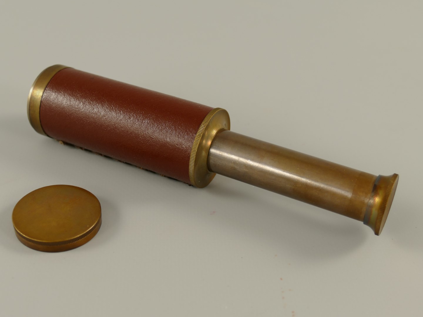 Fernrohr Messing brüniert Leder Holzbox L.10/17cm