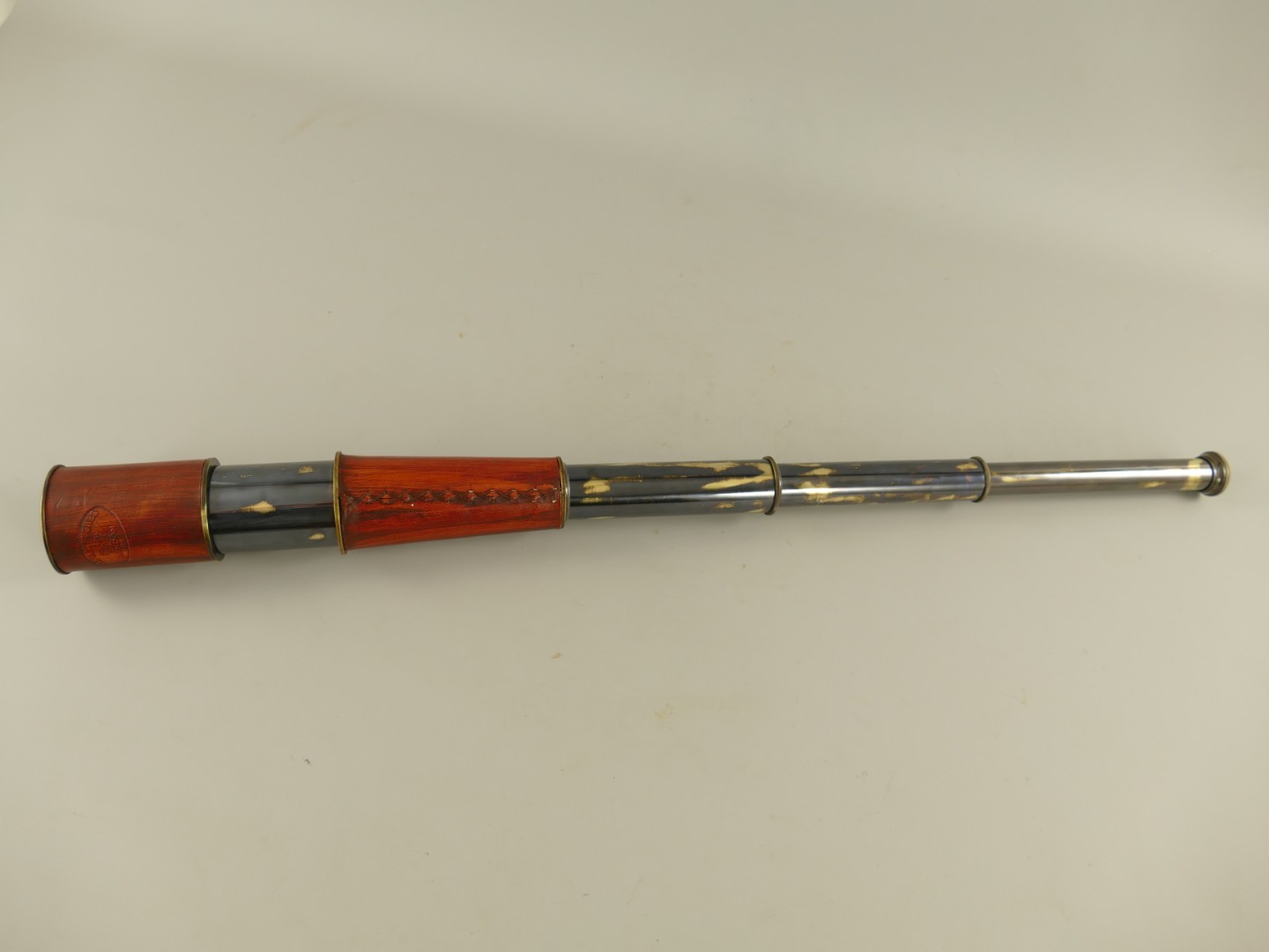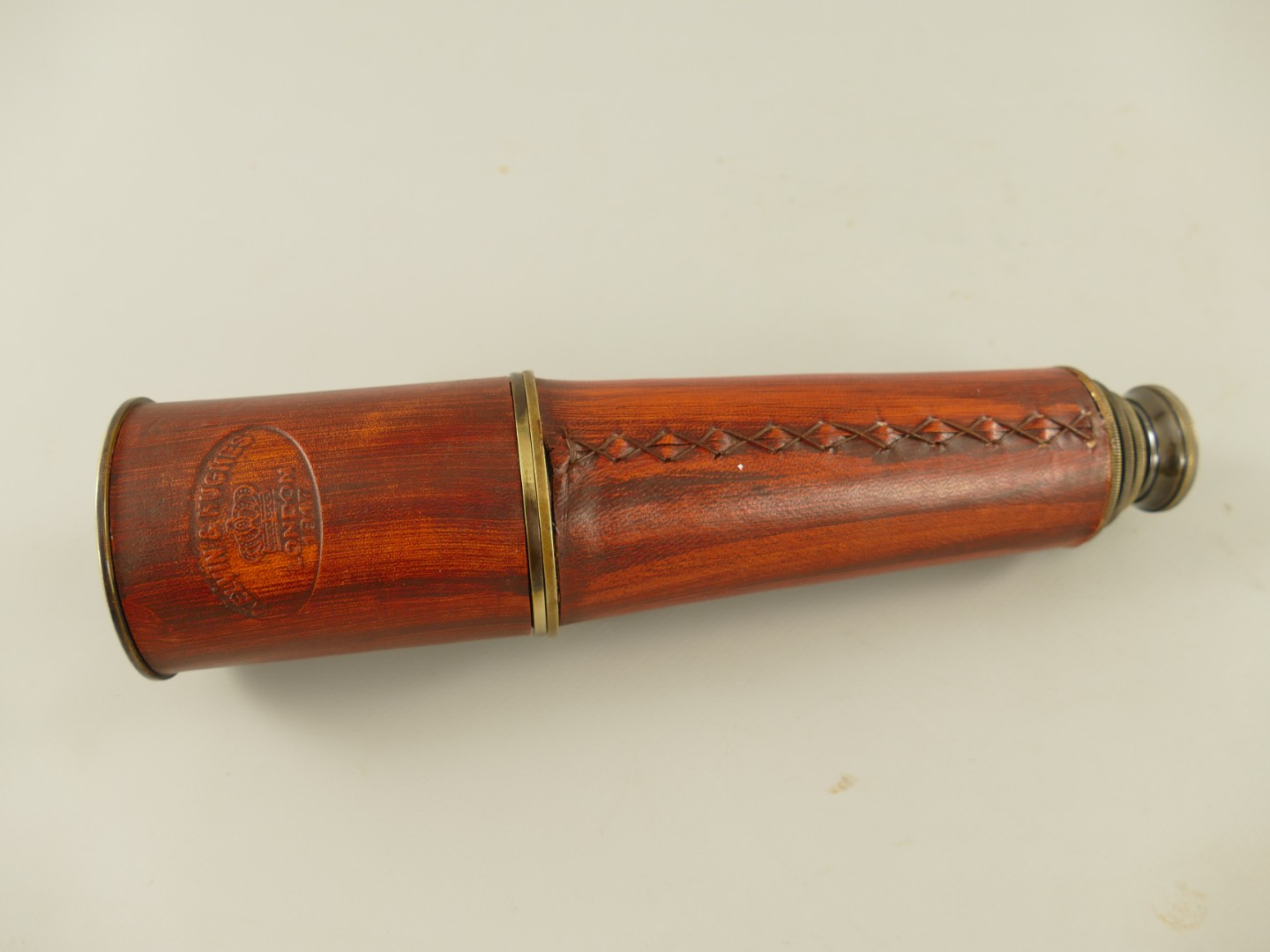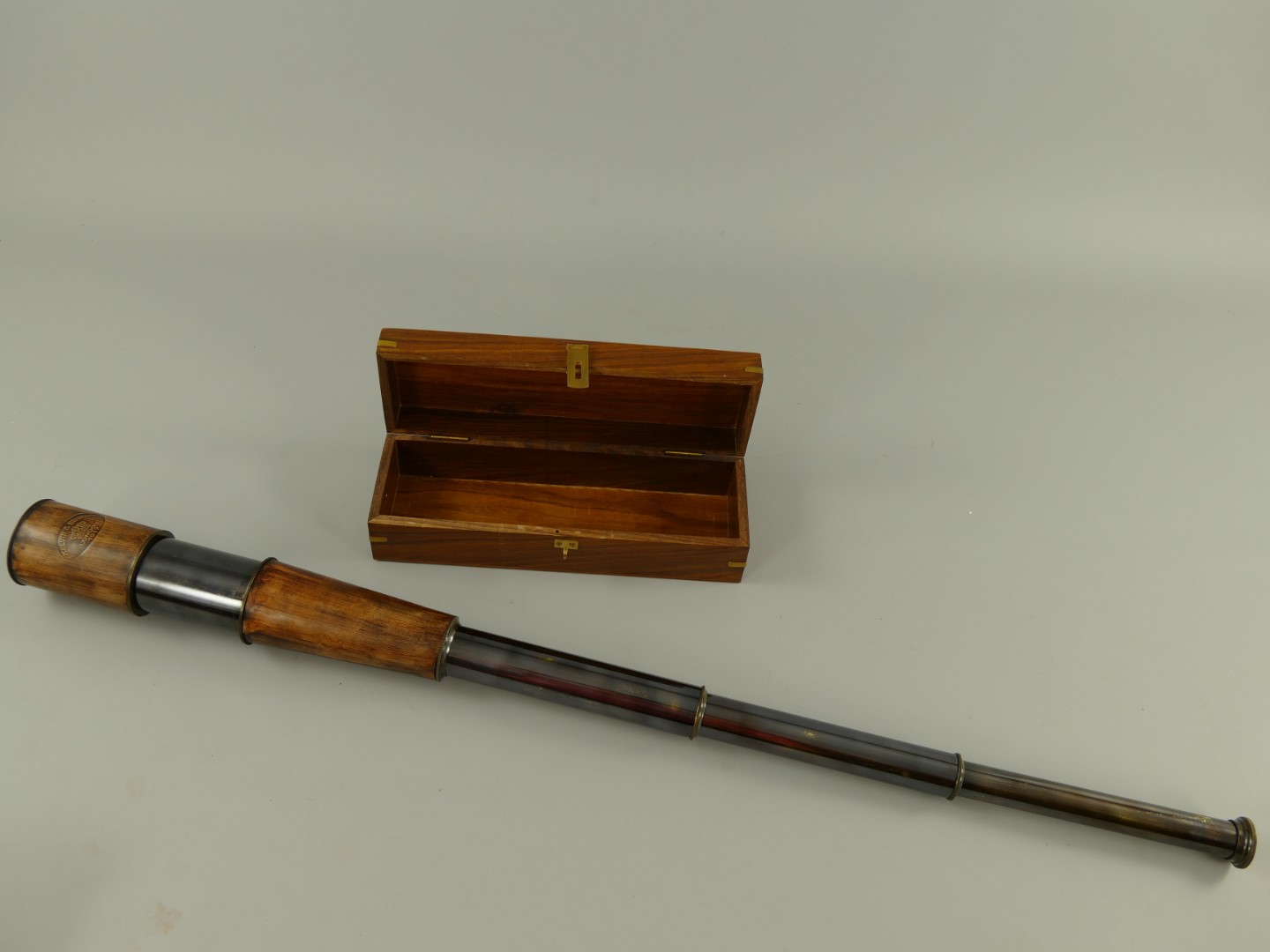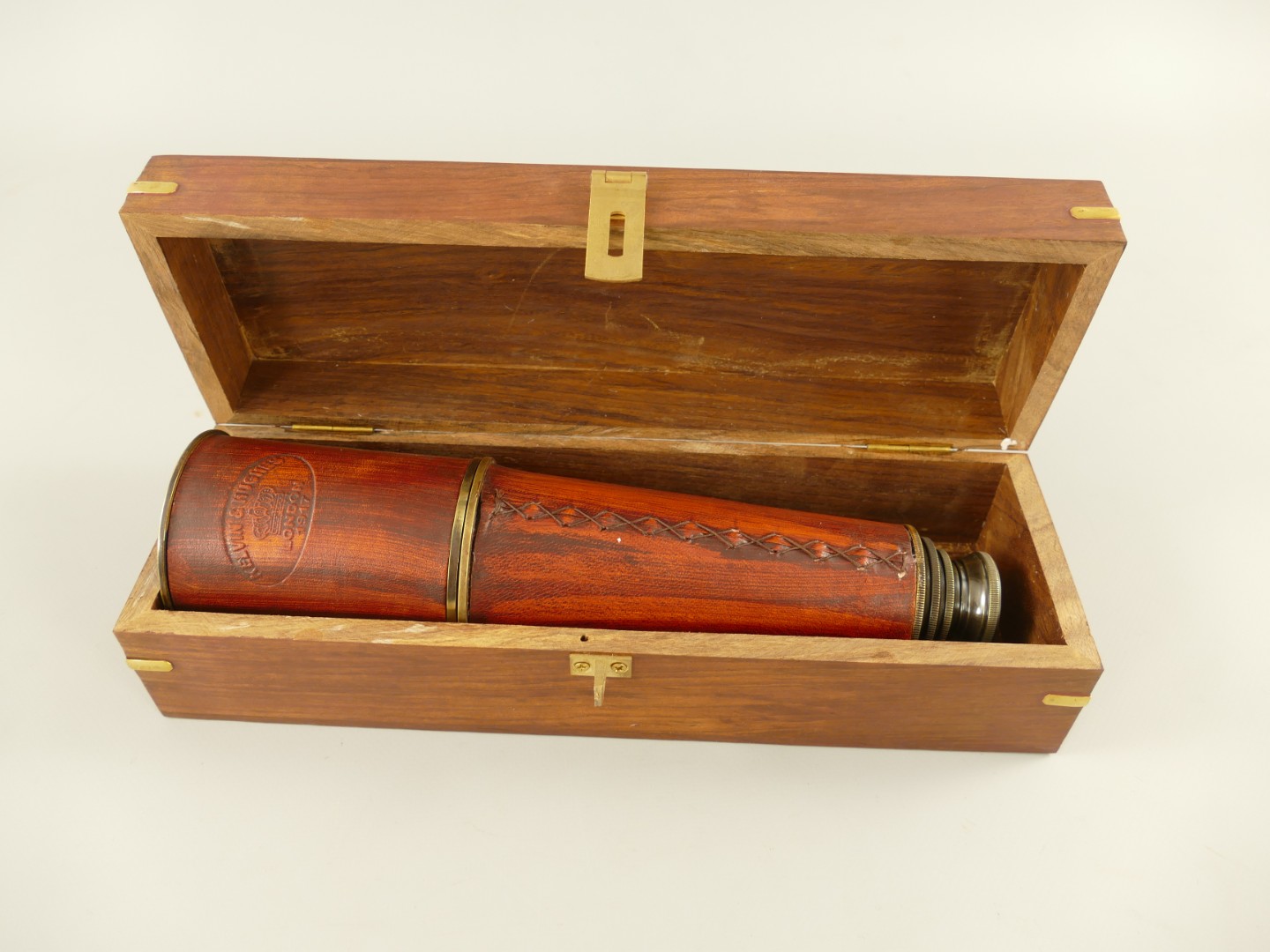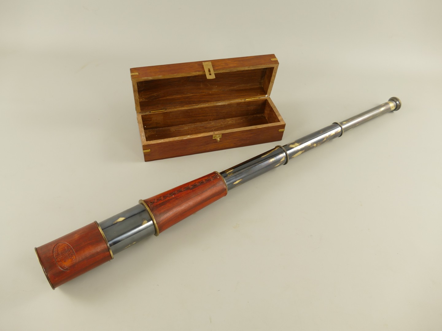 Artikelinformationen "Fernrohr Mes. brün. Leder LONDEN Holzbox L.27/90cm"