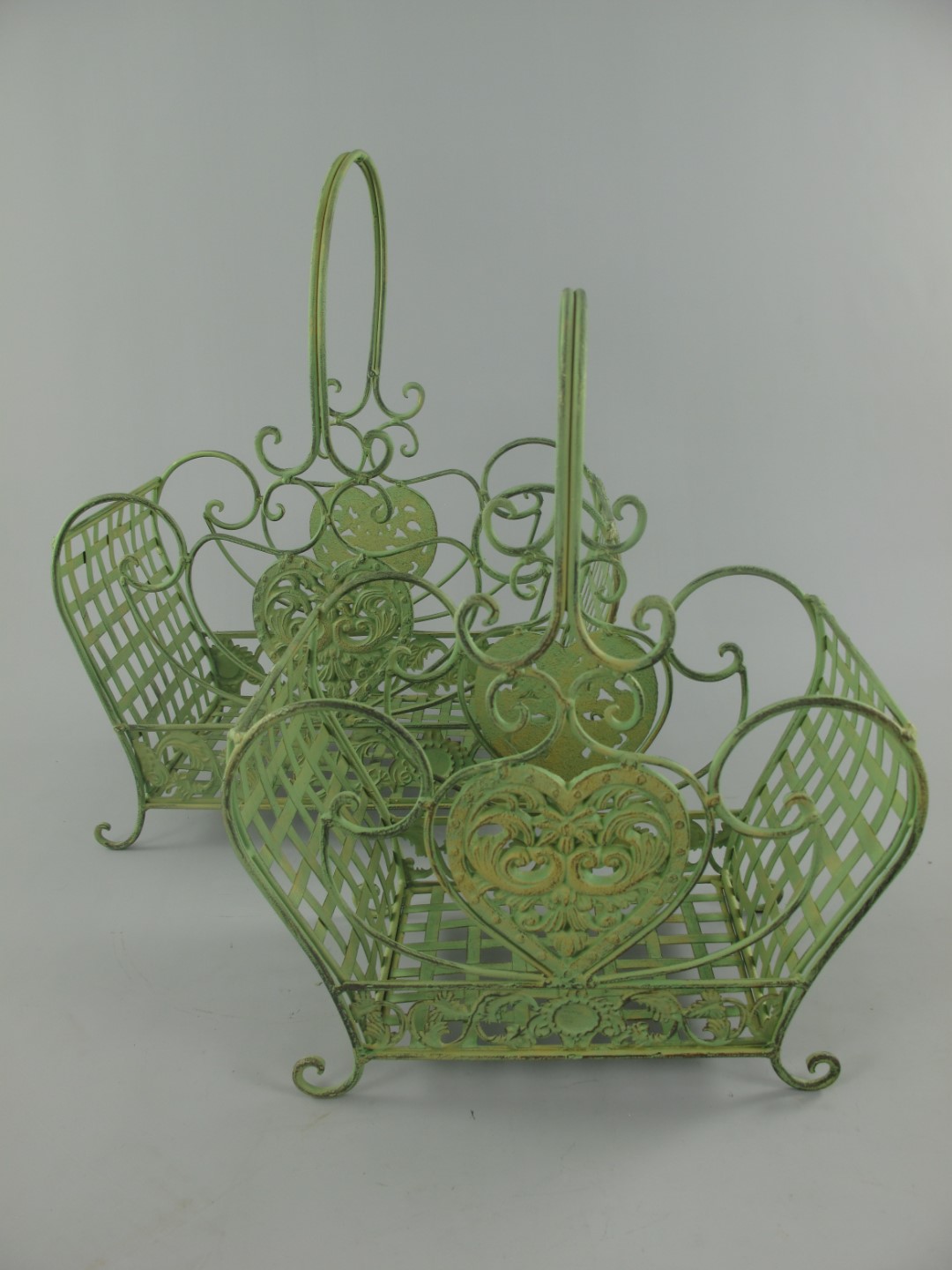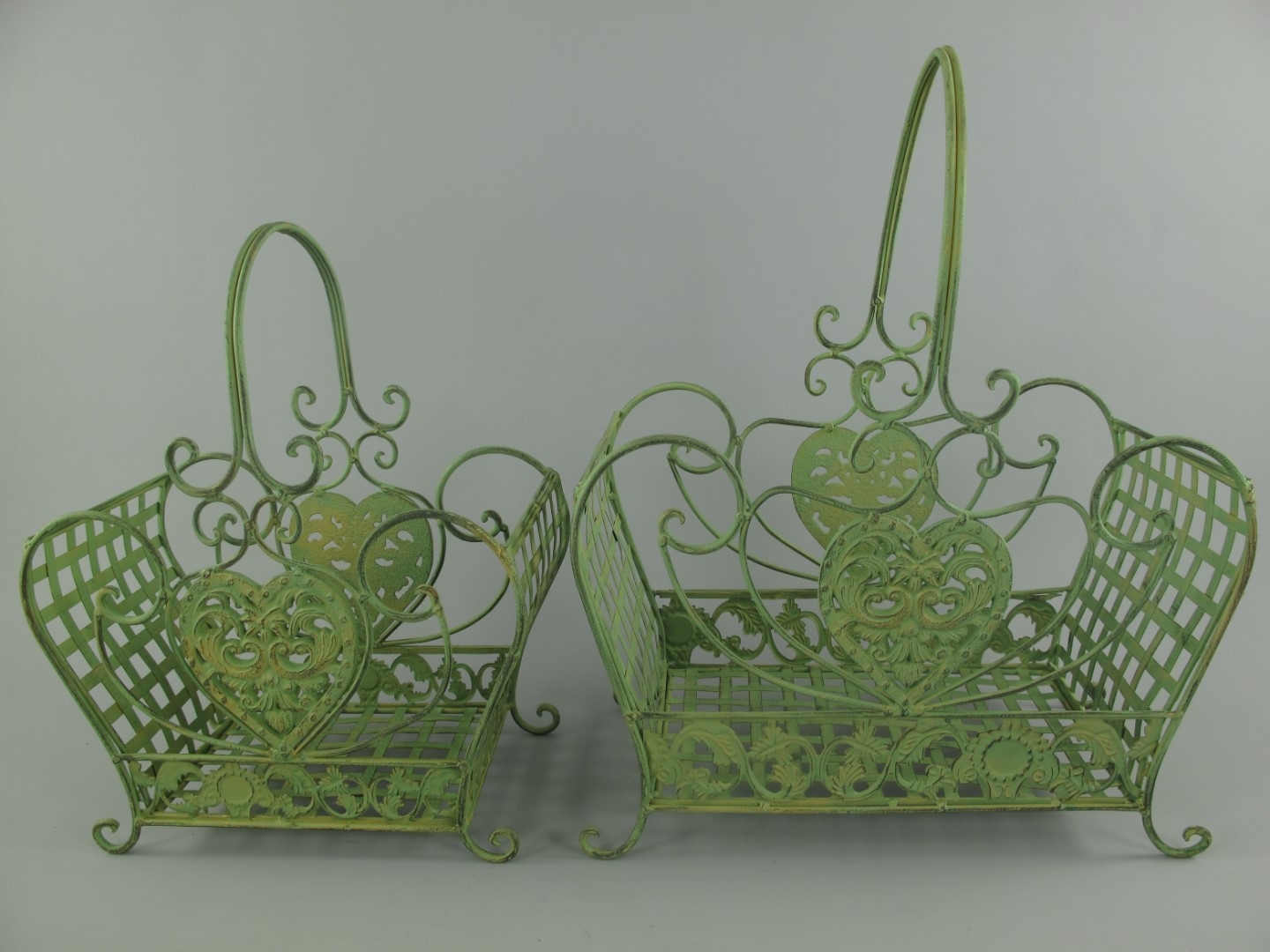 Korbset Eisen grün Set/2 H.43/52-L.34/42cm