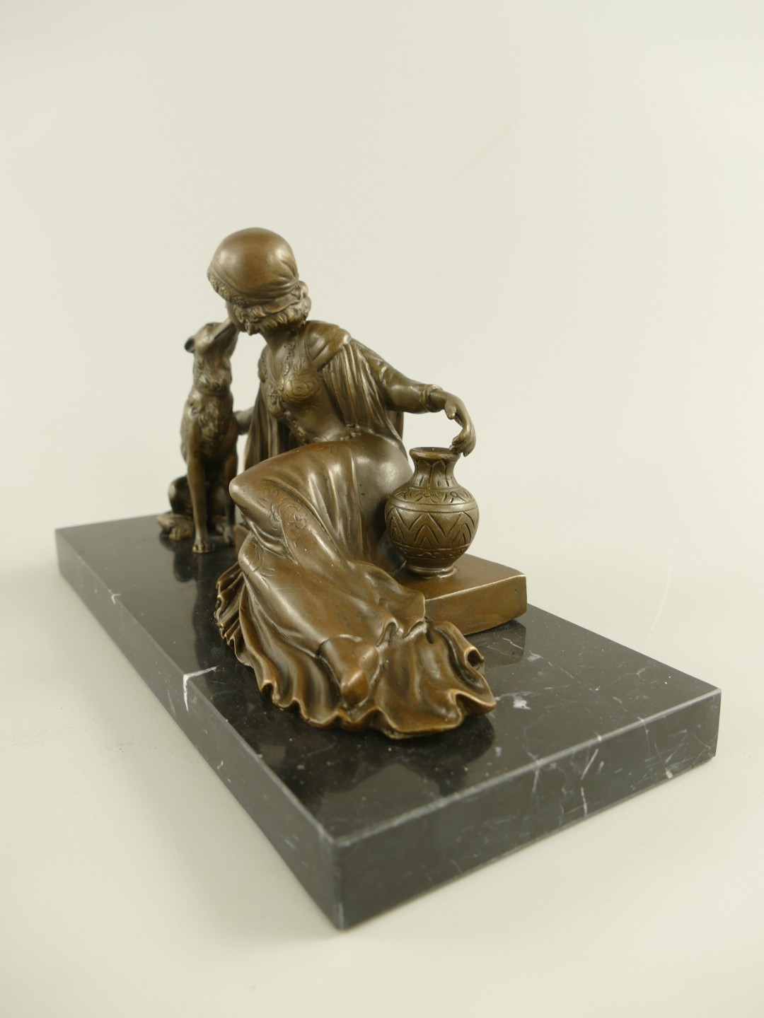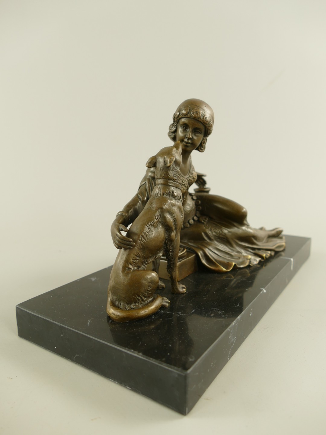 Figur Bronze Frau mit Hund L.27x15x12cm