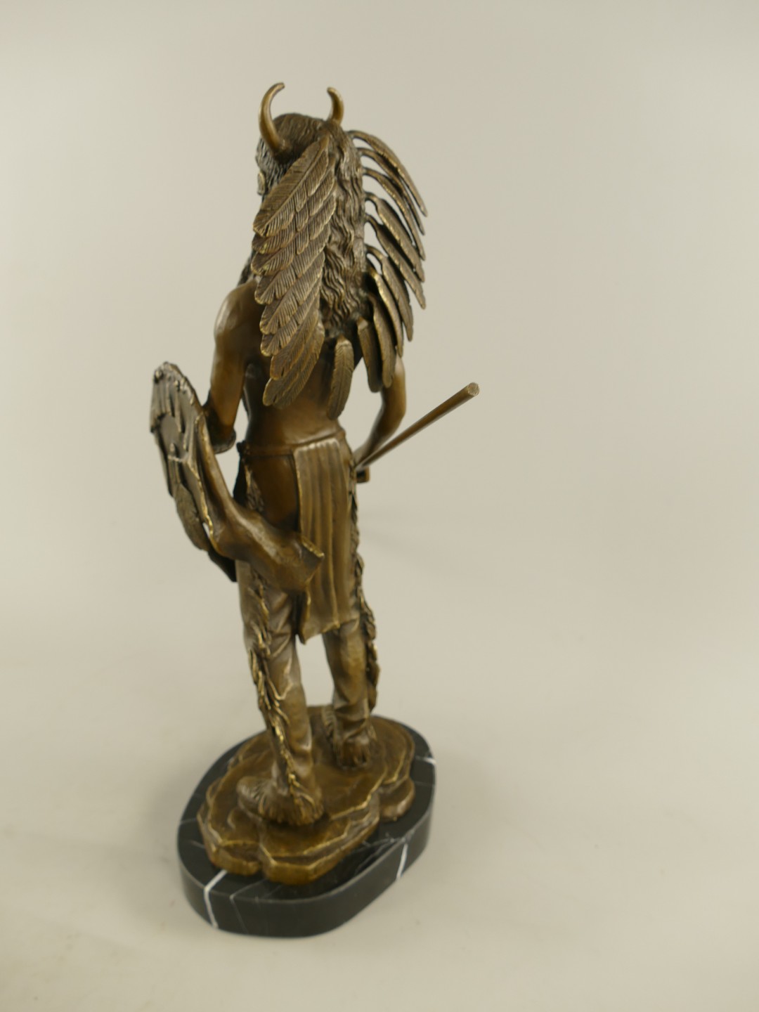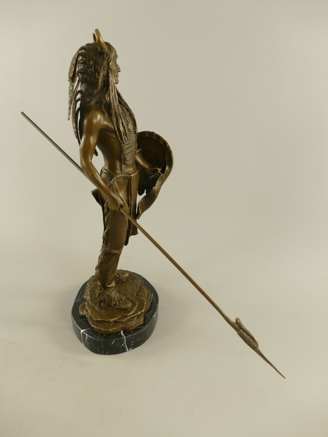 Figur Bronze Indianer mit Schild und Speer H.50cm