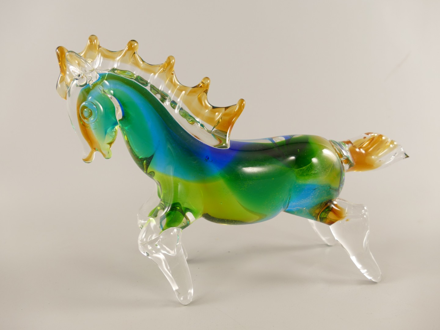 Glas Pferd Blau/Grun farbe L.32cm