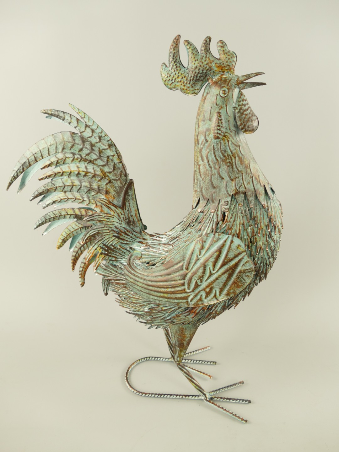 Hahn Eisen rustikal Grün farbig H.55x42x18cm