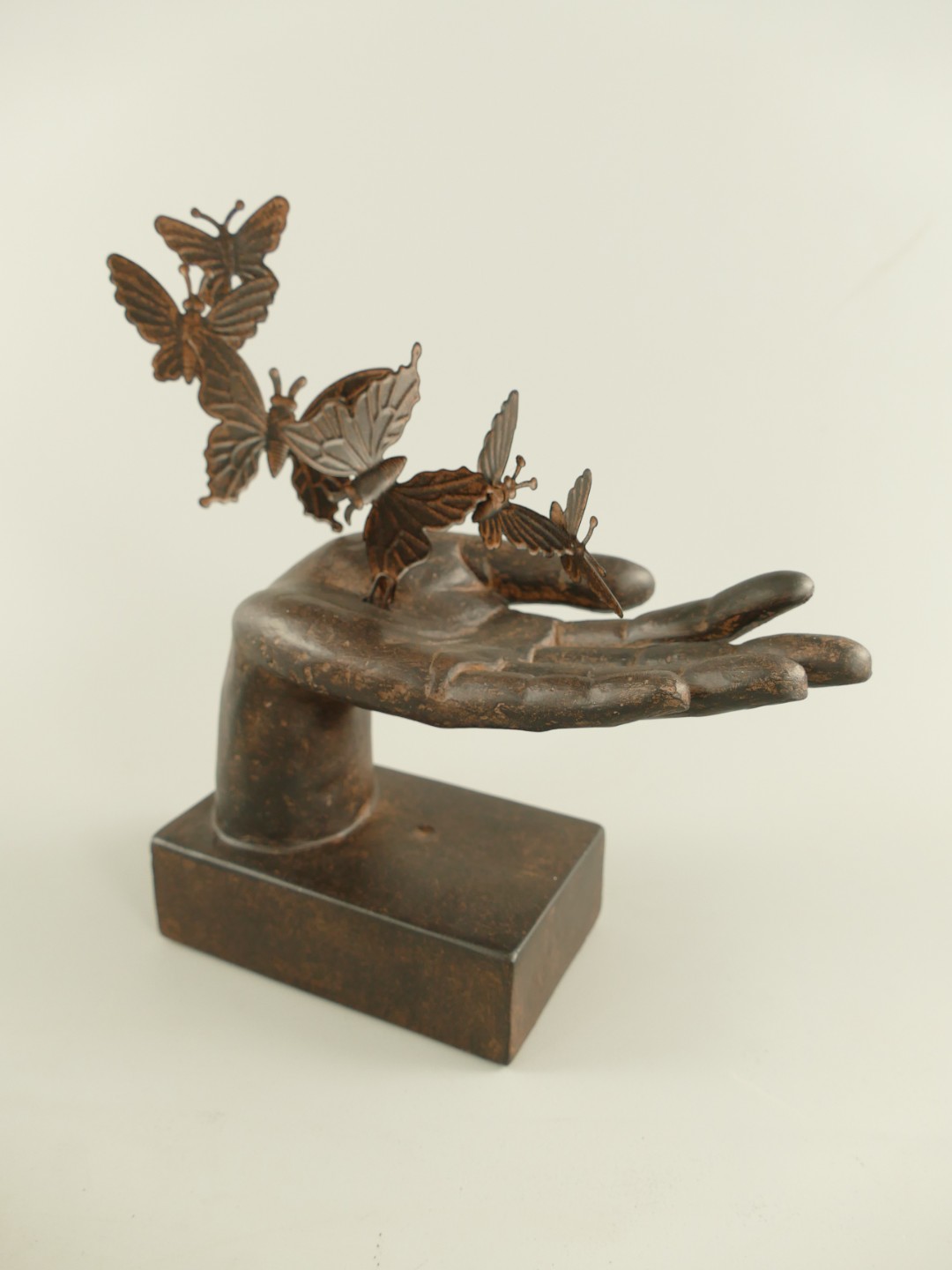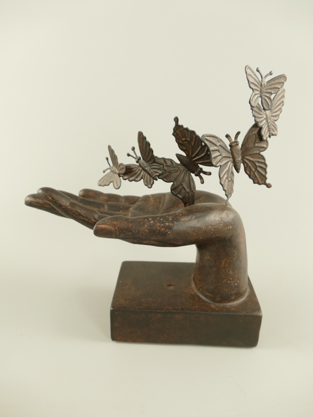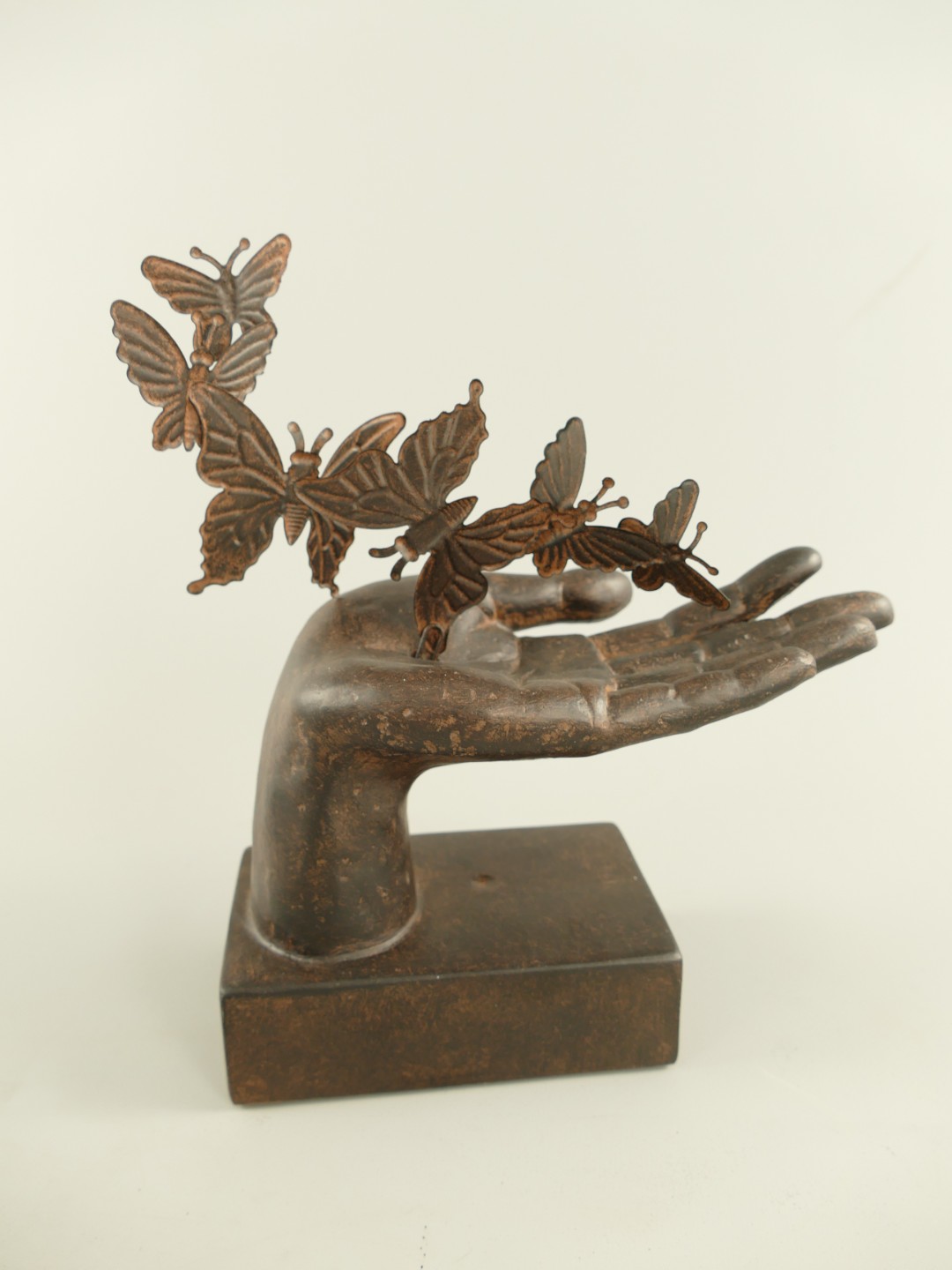 Hand mit Schmetterlingen Polystein farbe H.24cm
