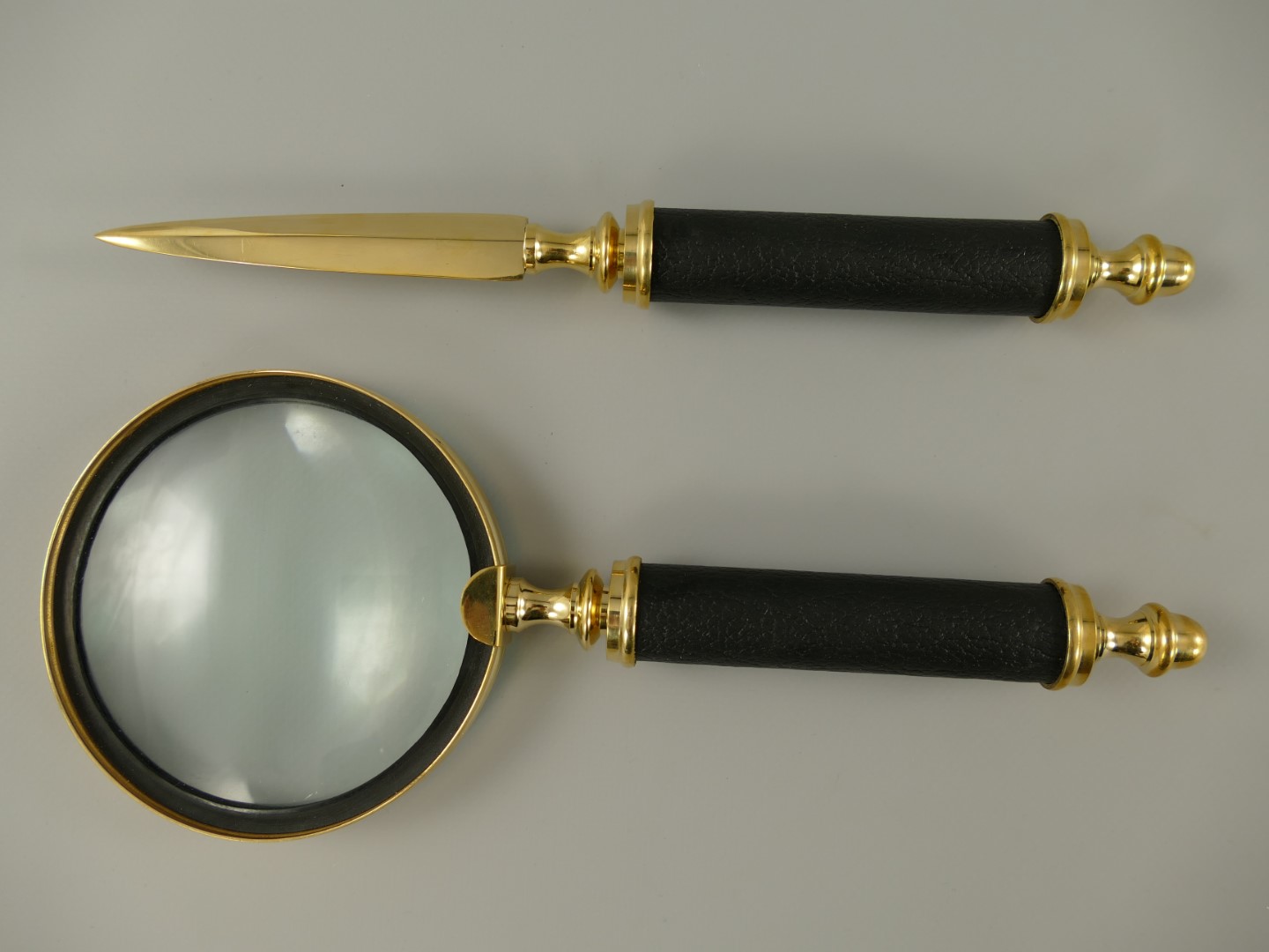 Artikelinformationen "Brieföffner und Lupe Messing/Leder Set L.26cm"