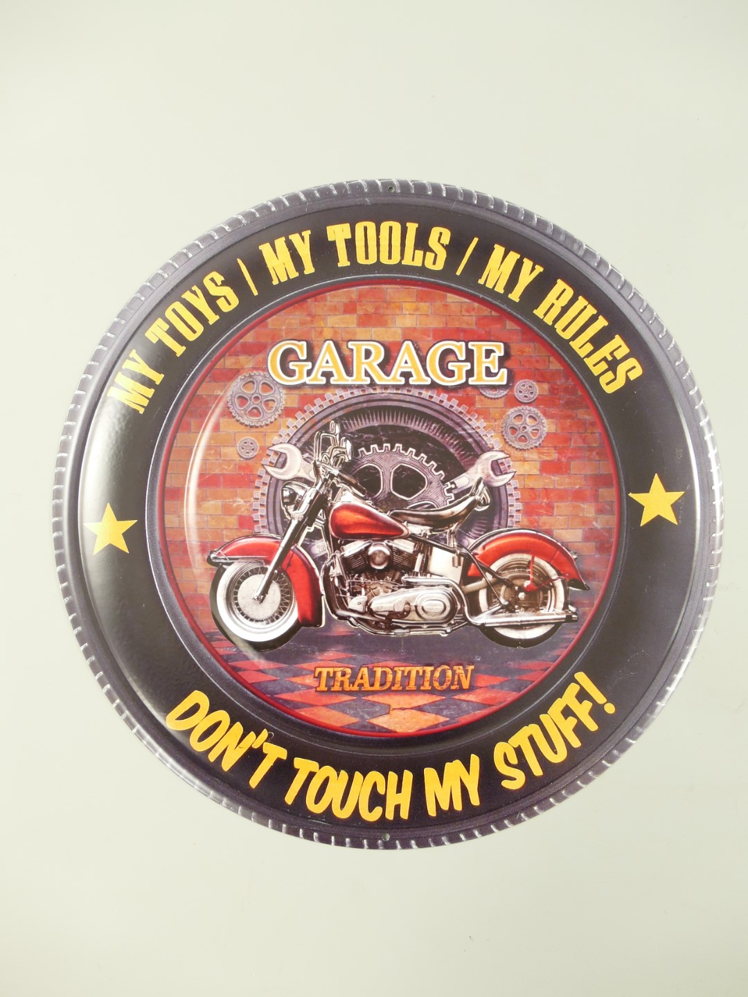 Wandschild Eisen Rund Garage Tradition D.40cm