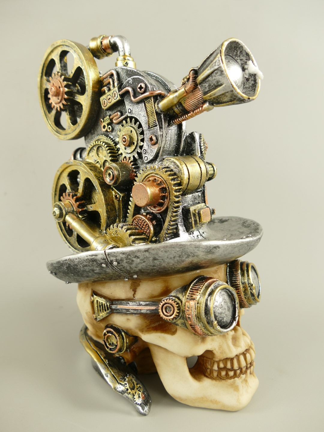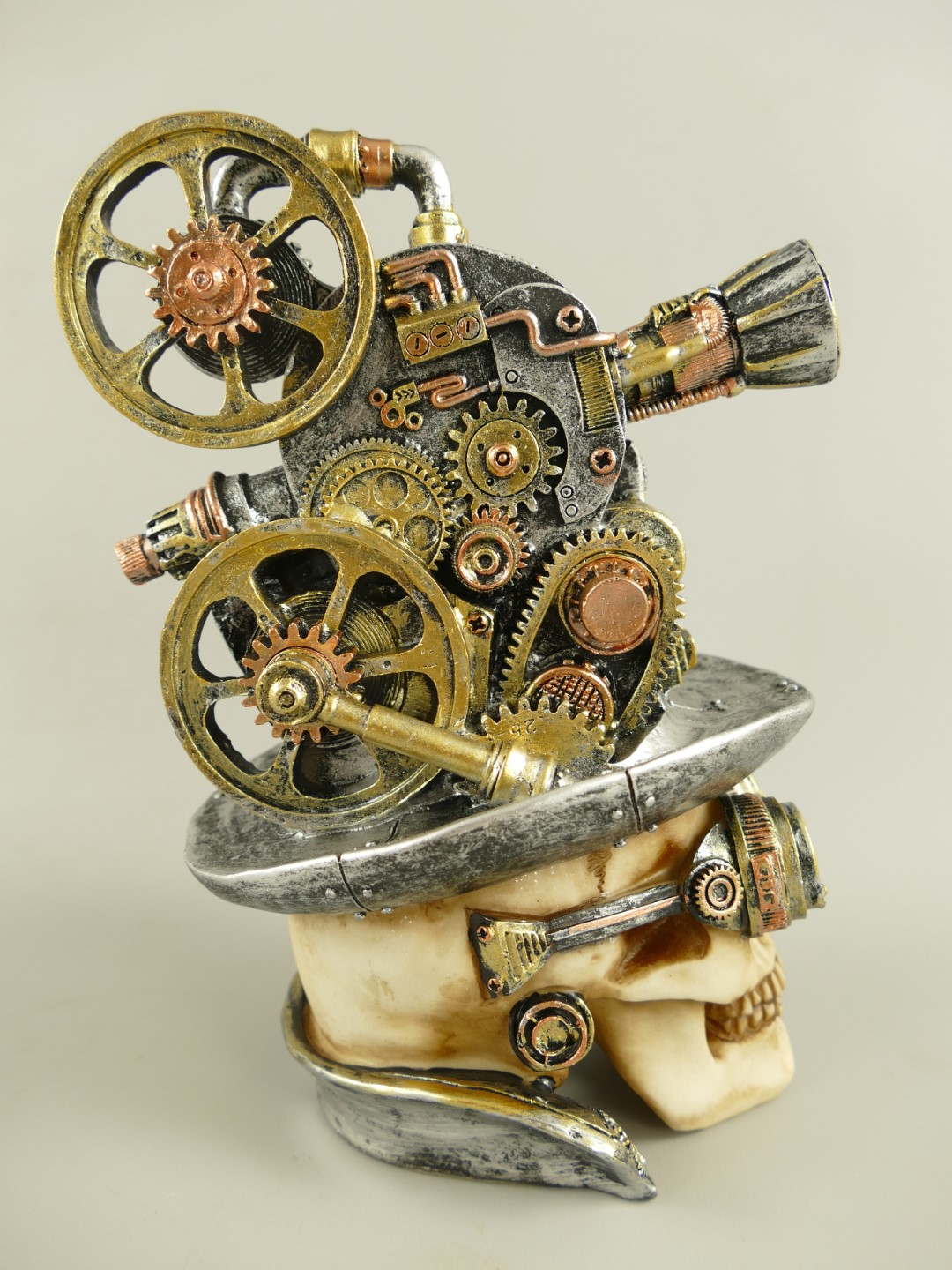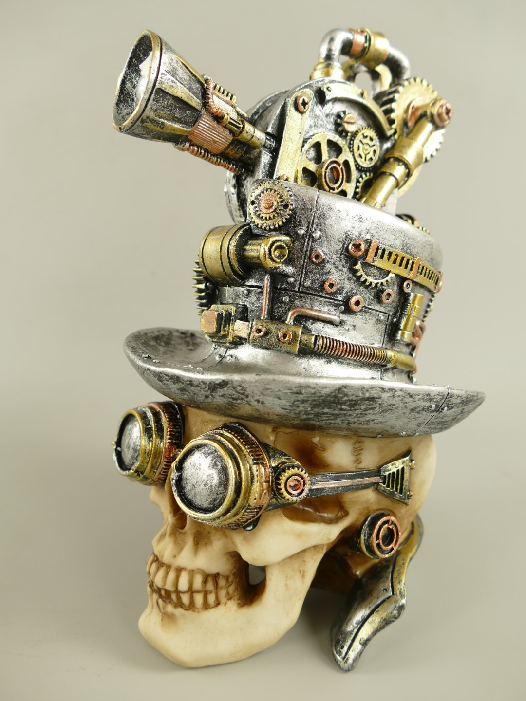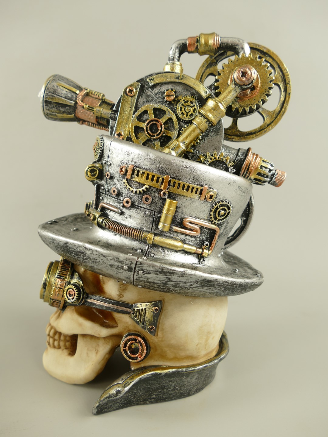 Figur Polystein Steampunk Totenkopf farbig H.23cm