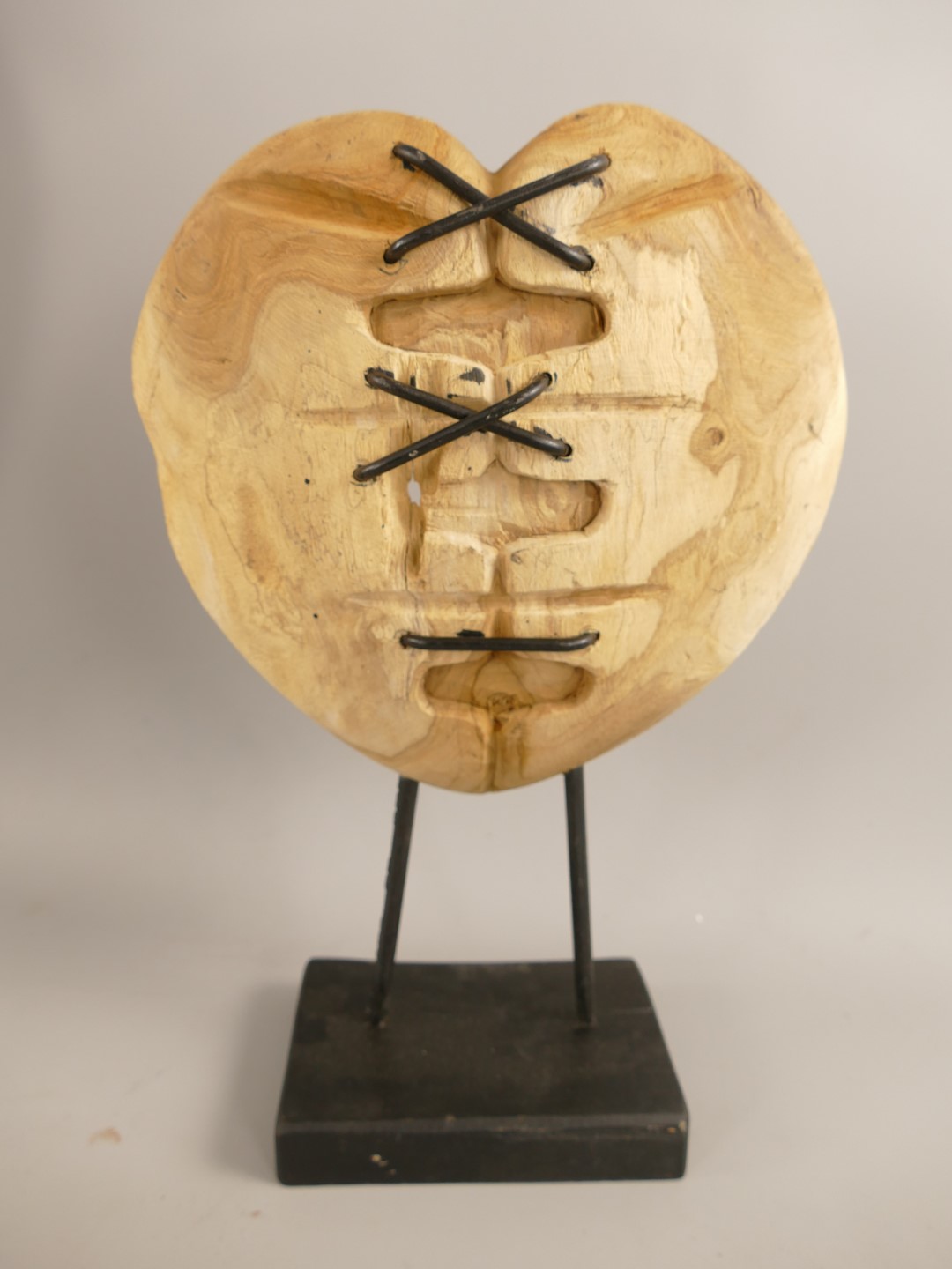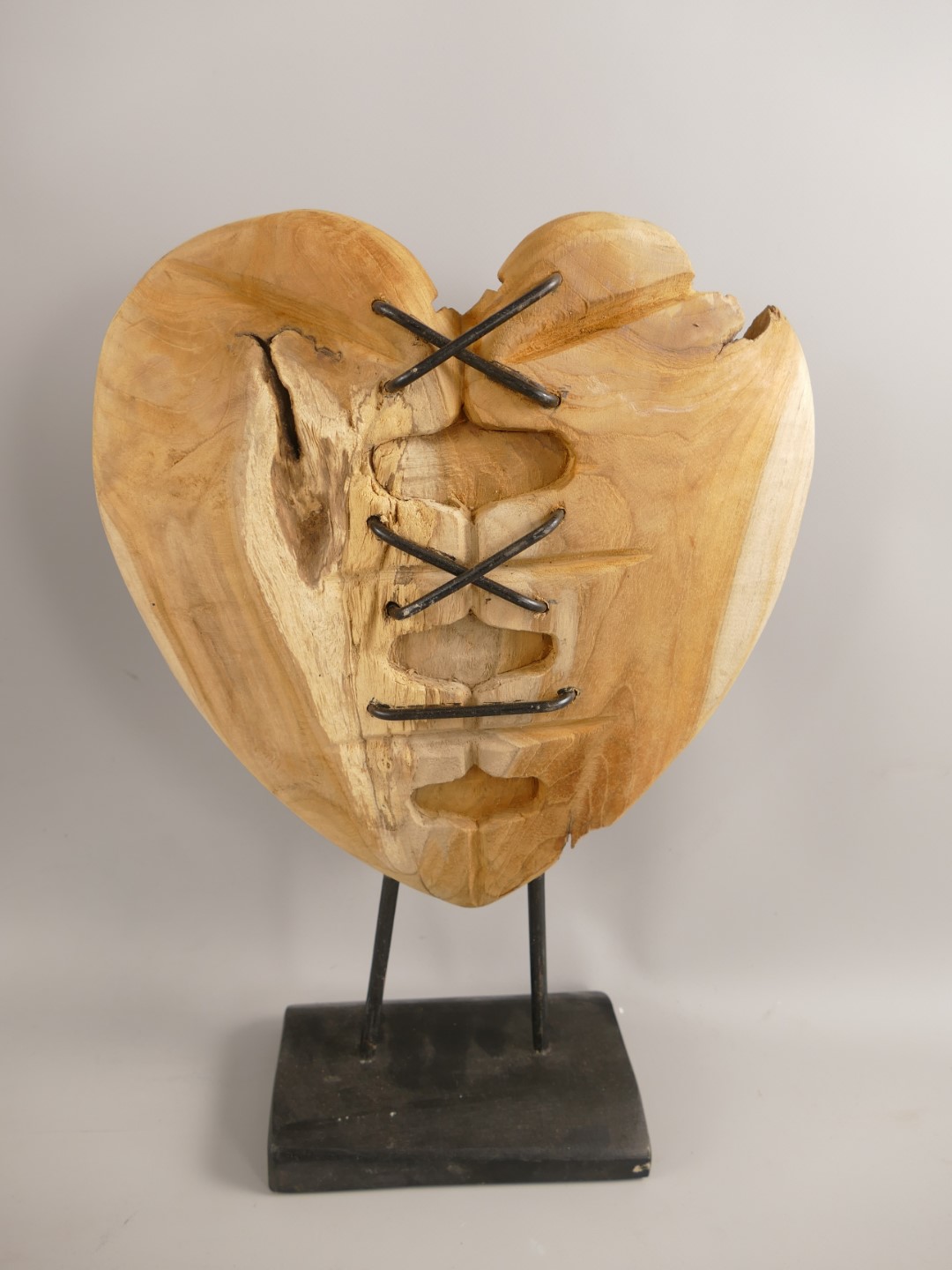 *A? *NT Deko Herz Teak Holz/Eisen 3/Set H.36-52cm