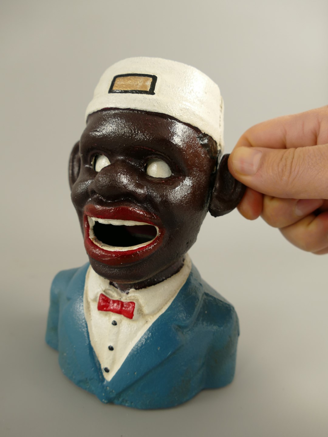 Spardose(Mechan.) Figur Eisen H.18x13cm