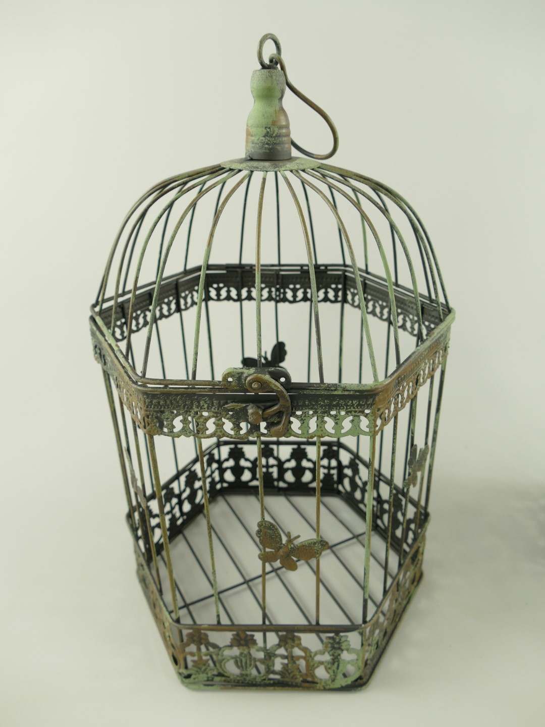 Käfig 6*ECK Eisen rust. grün Set/3 H.26/46cm SET!