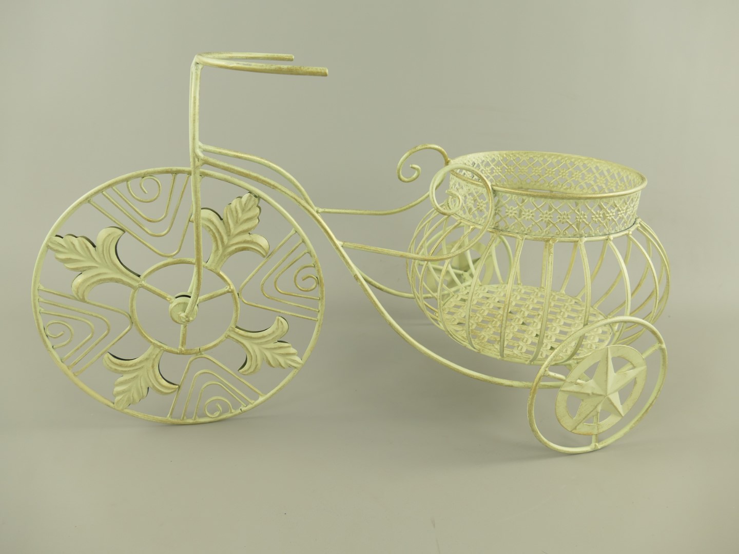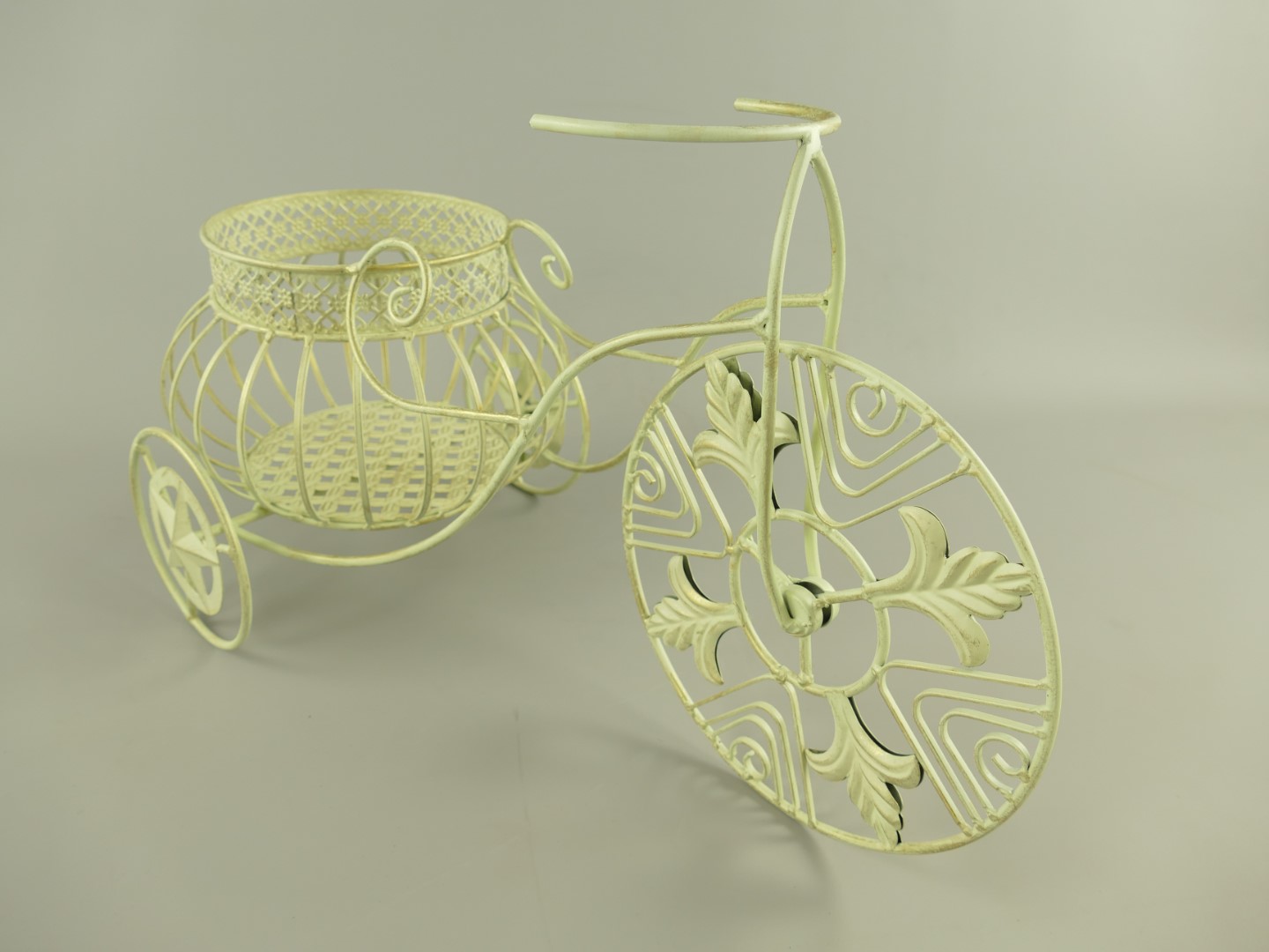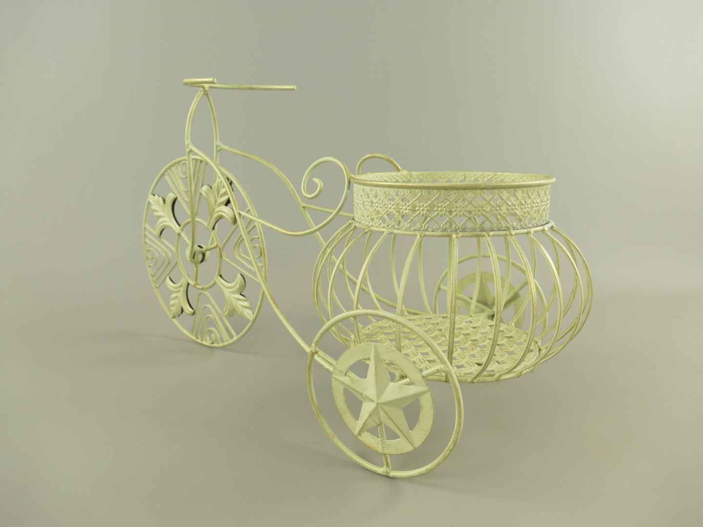 Blumenkorb Dreirad Eisen rust. weiss L.56x31cm