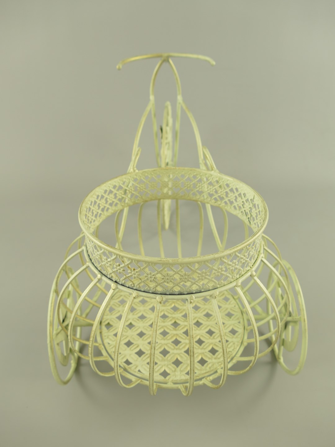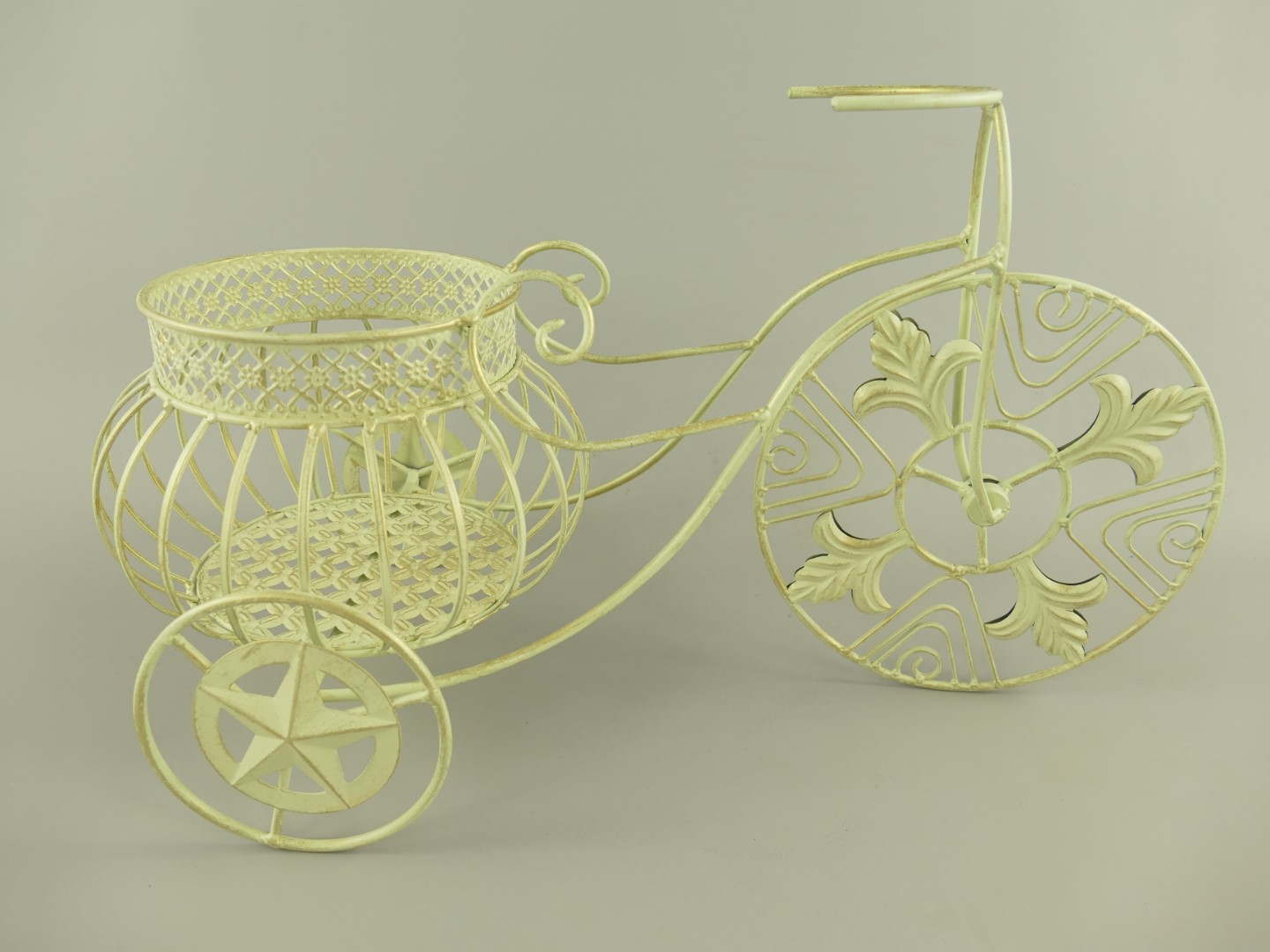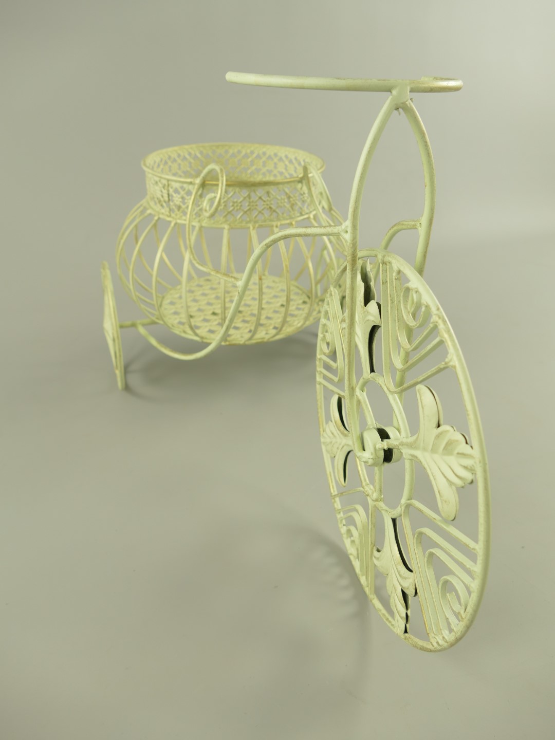 Blumenkorb Dreirad Eisen rust. weiss L.56x31cm