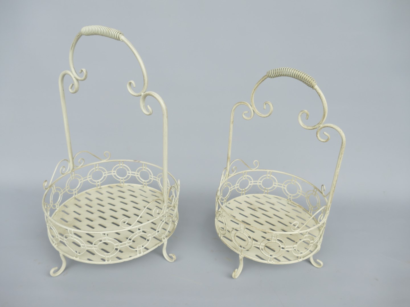 Korbset Rund Eisen rust. weiss Set/2 H.55/48cm