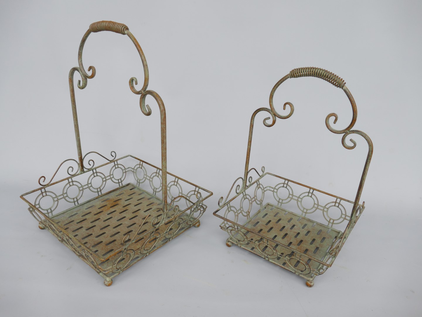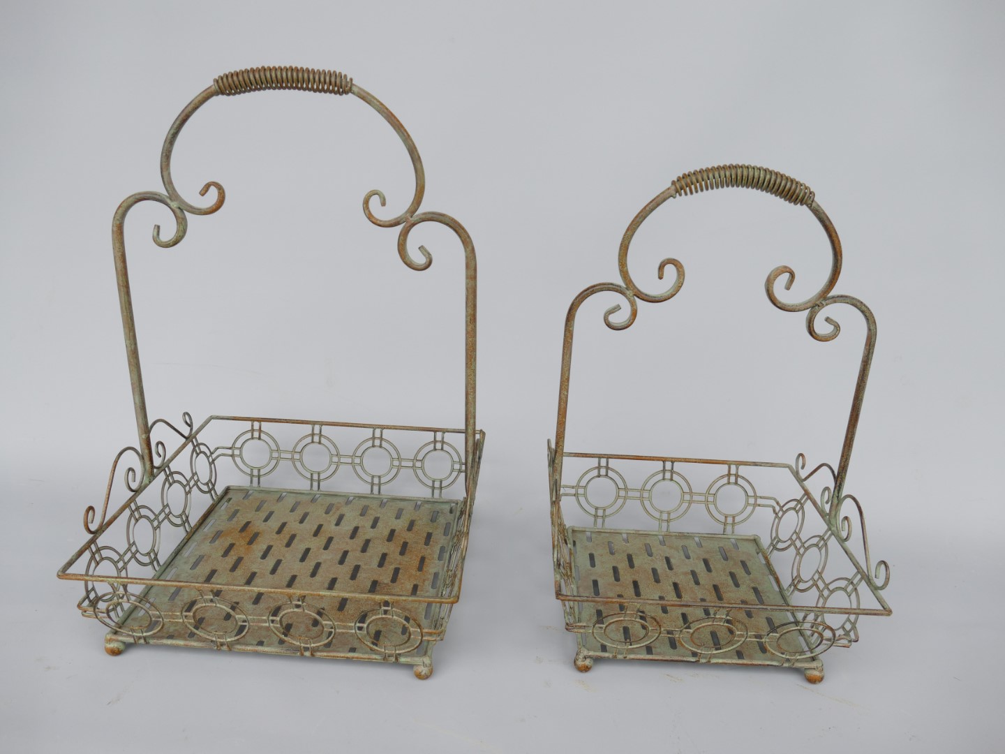 Korbset Eisen rustikal grün Set/2 H.50/43cm