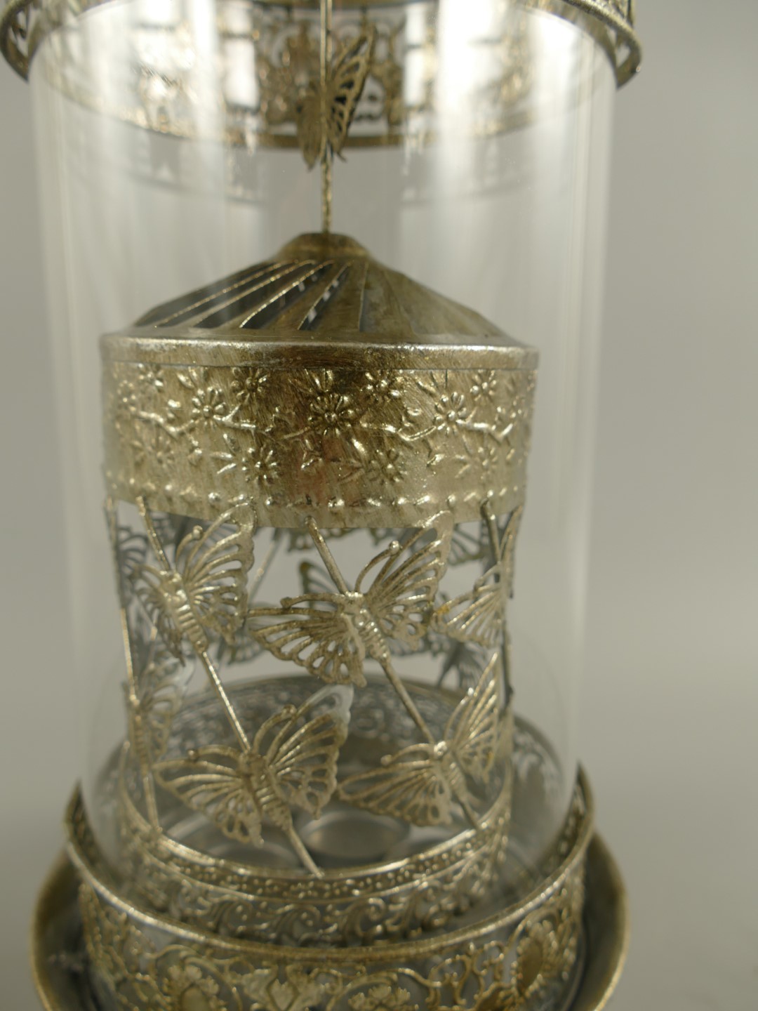 (*)Laterne SPINNING Eisen/Silber Farbe D.18x33cm