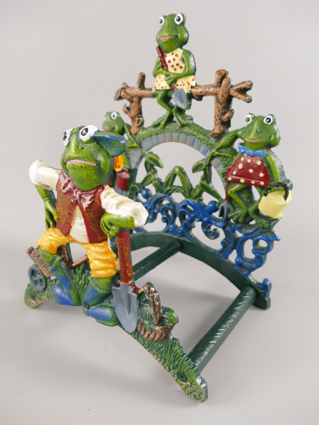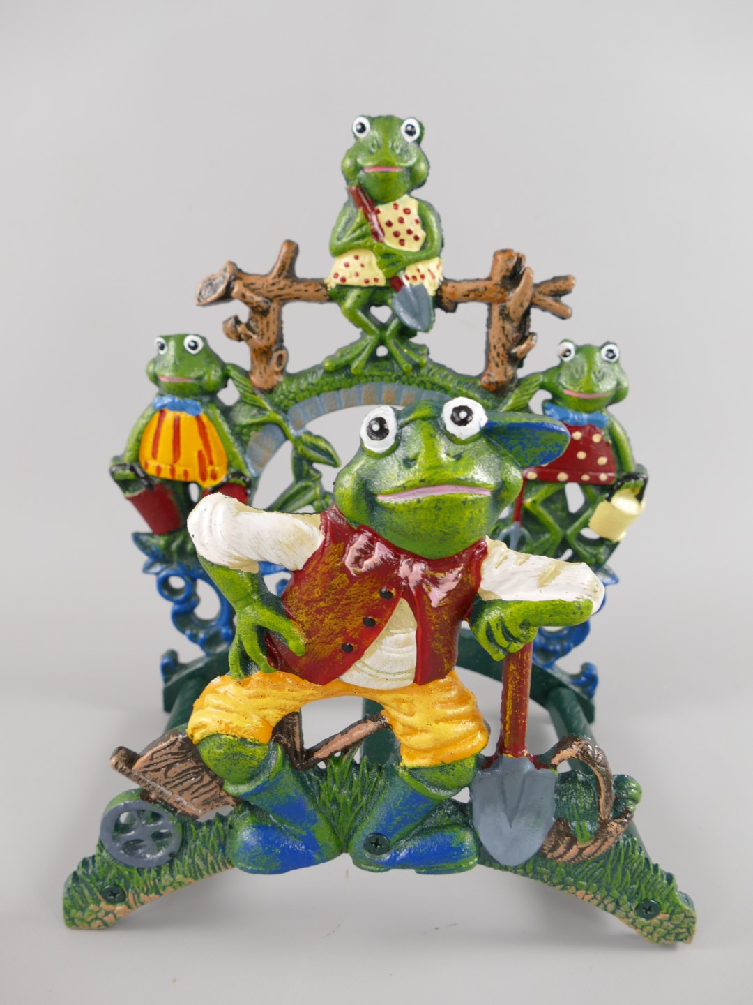 Schlauchhalter FROSCH rustikal farbig H.30x26cm