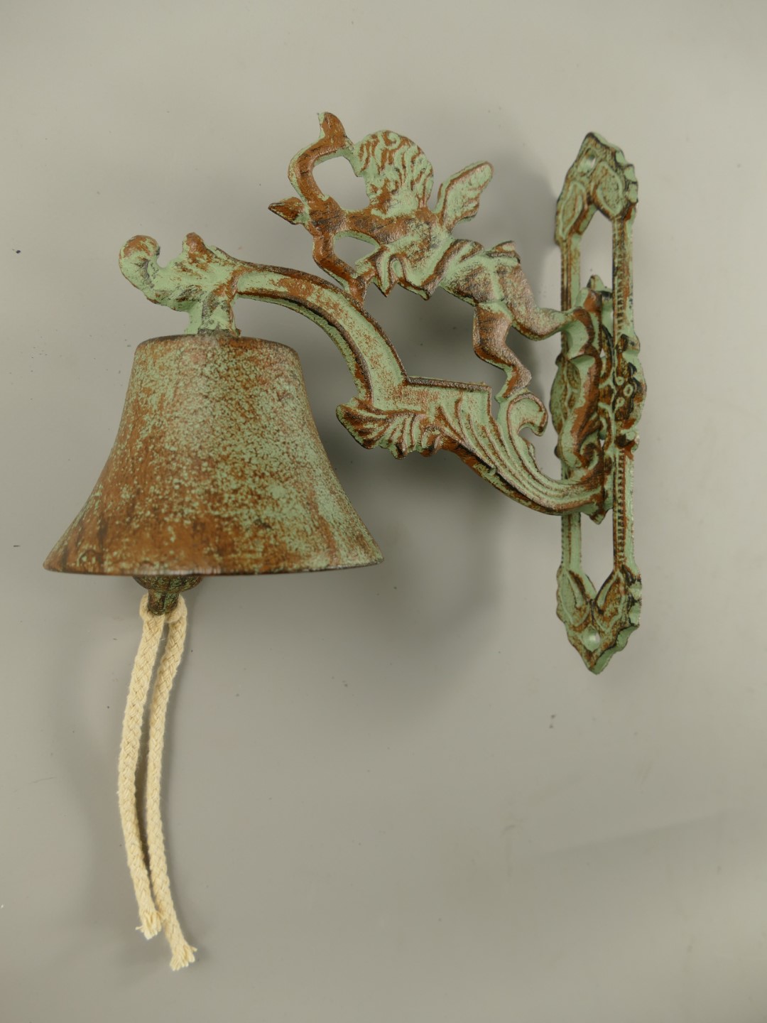 Wandglocke Engel Gußeisen farbig H.22x20cm