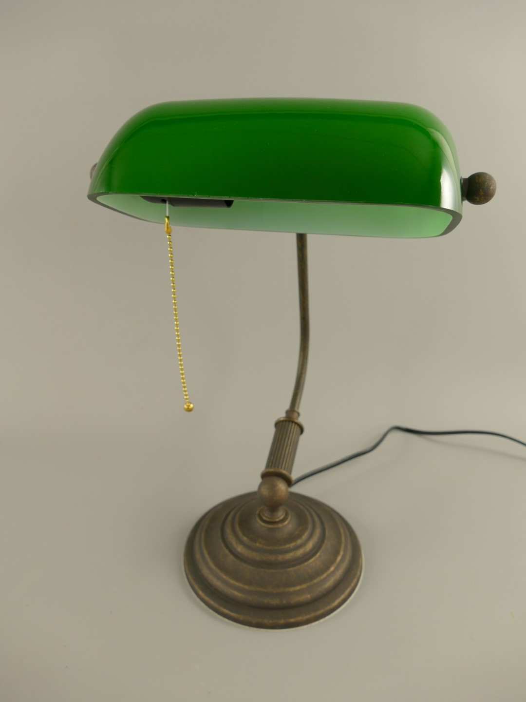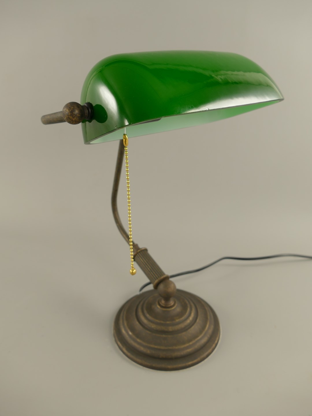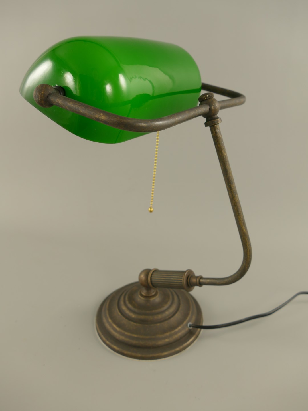 Bankerslampe Messing brüniert Glas grün H.38x27cm