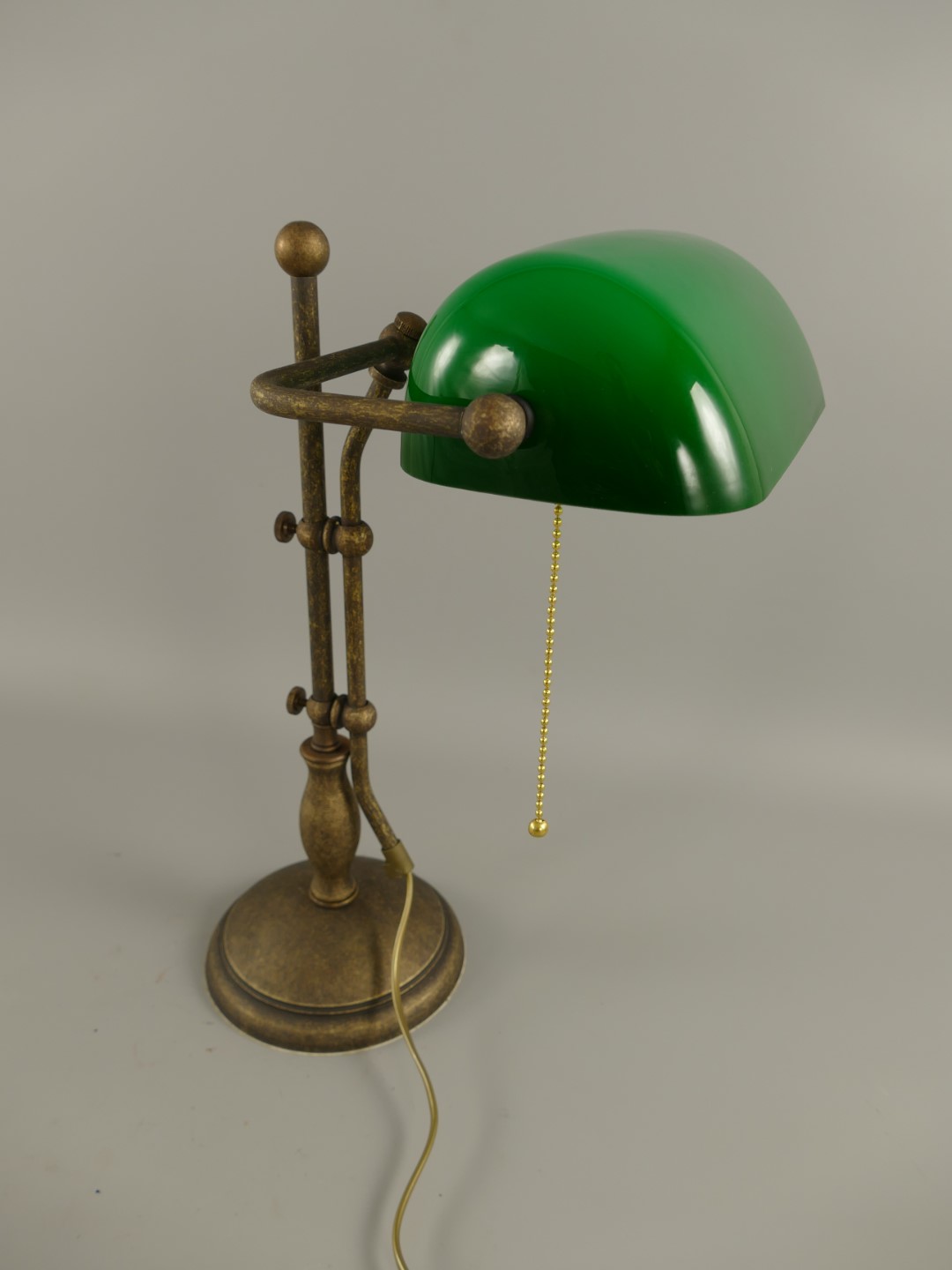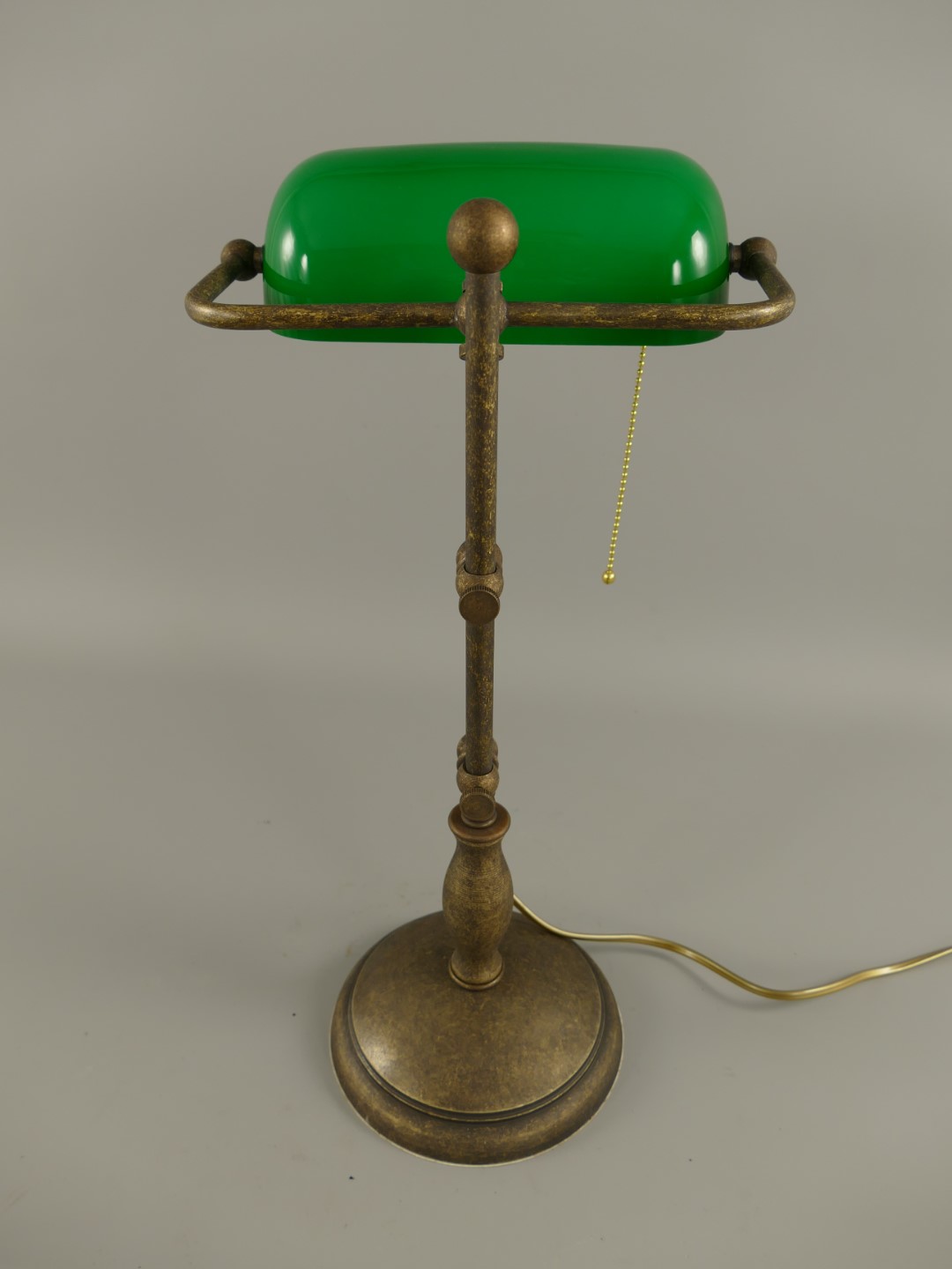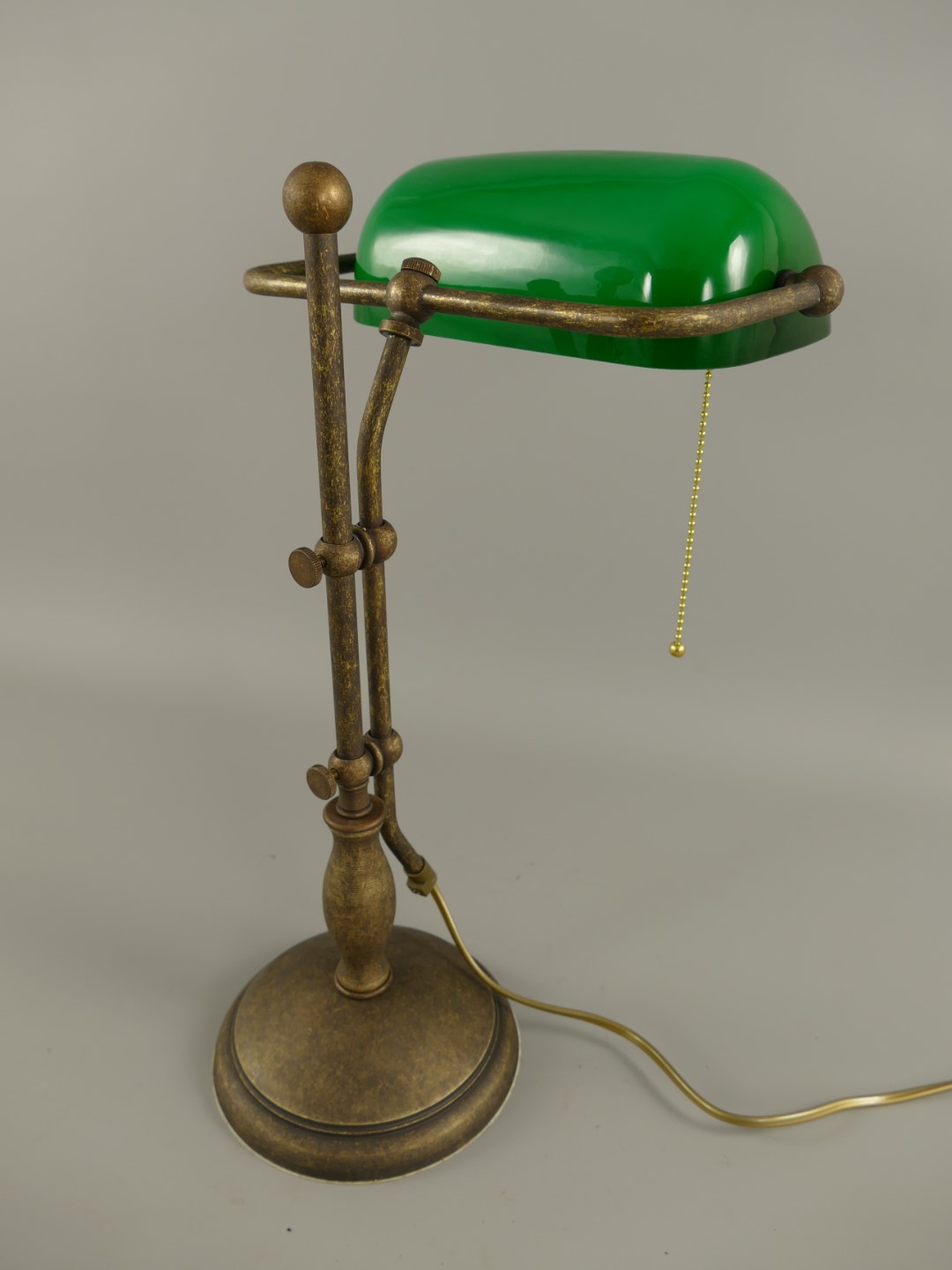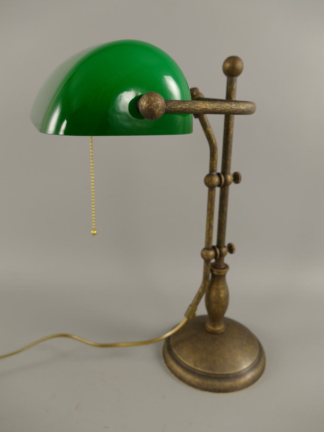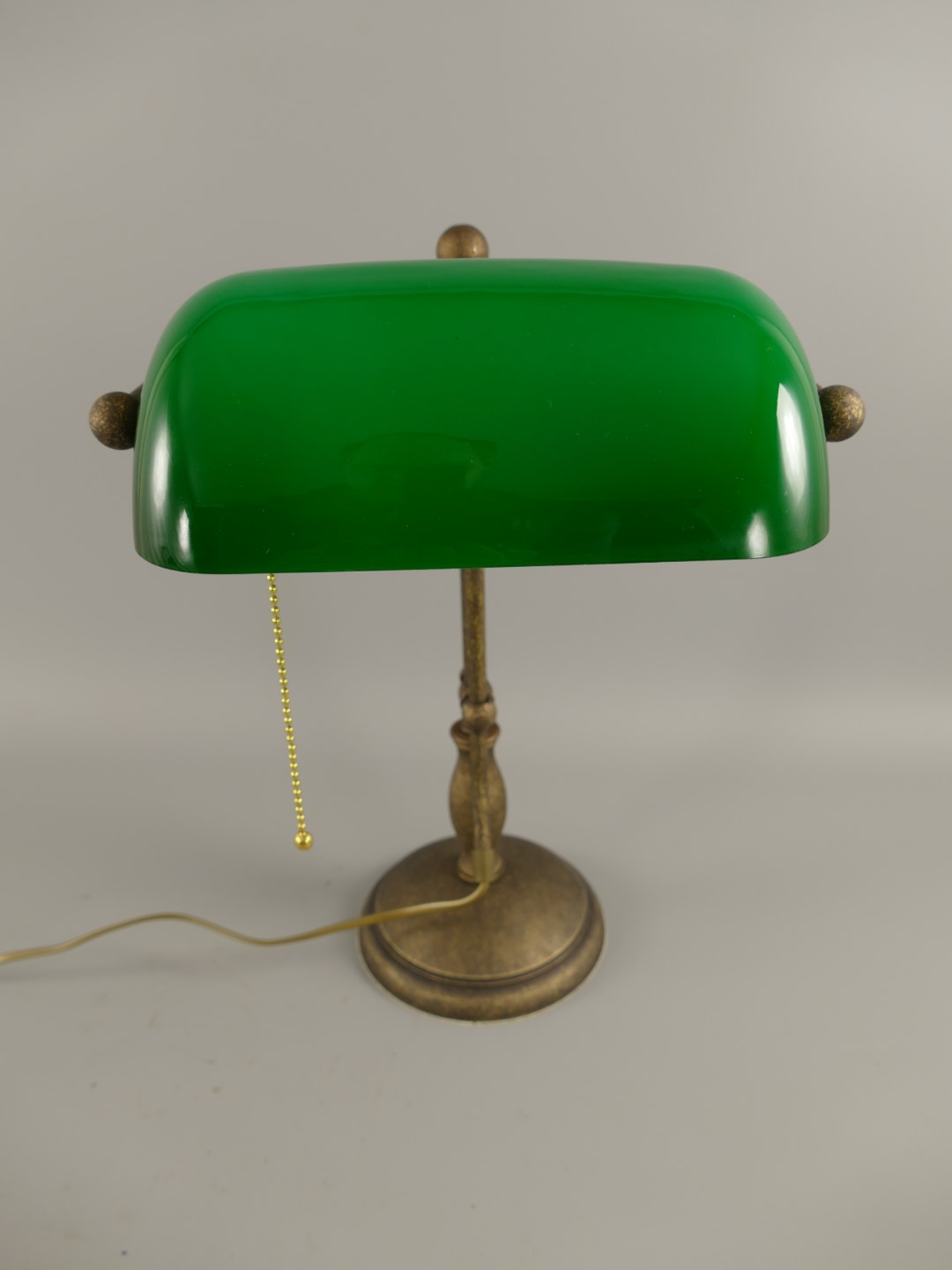 *ANG. Bankerslampe Messing brün. Glas grün H.45cm