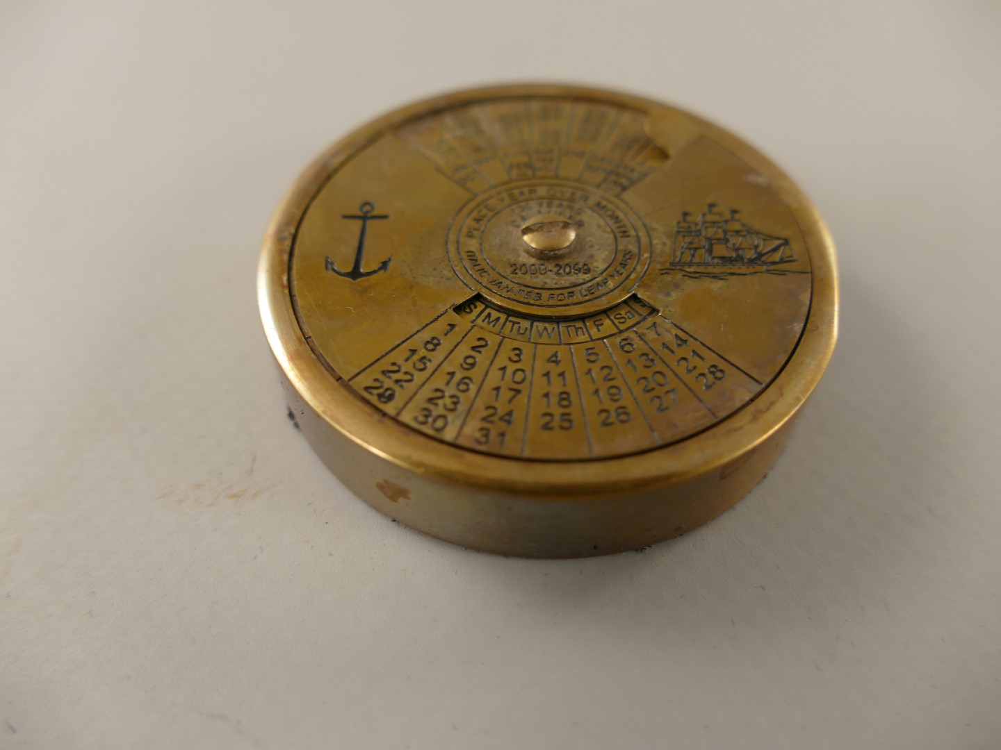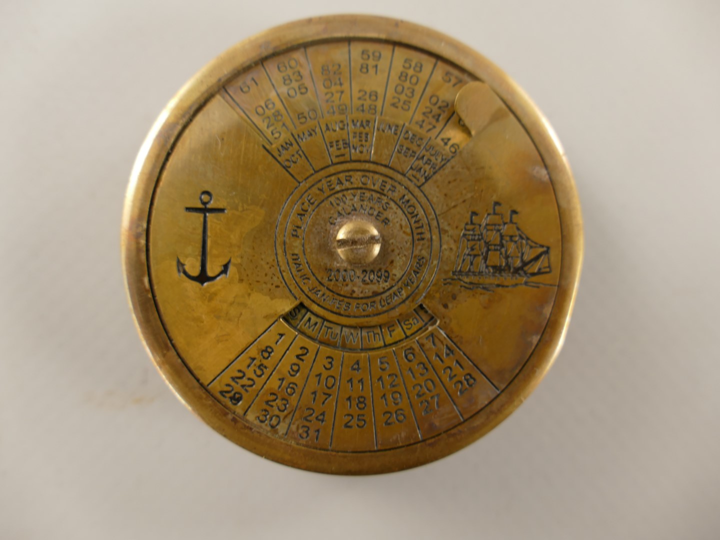 *ANG. KALENDER Messing brüniert D.9,5x1,5cm